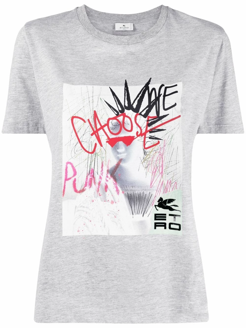 Imprimé graphique sur le buste, imprimé graffiti, encolure ras du cou, manches courtes. Matière : coton.