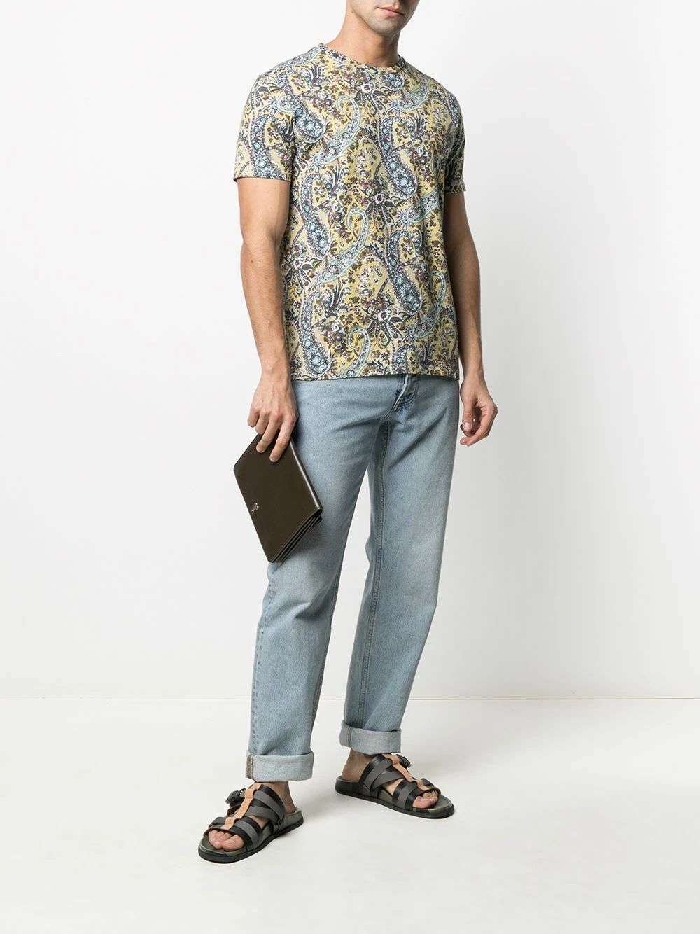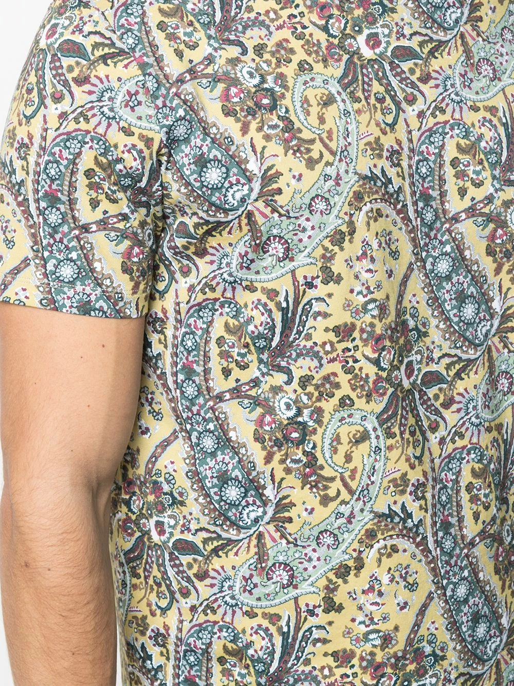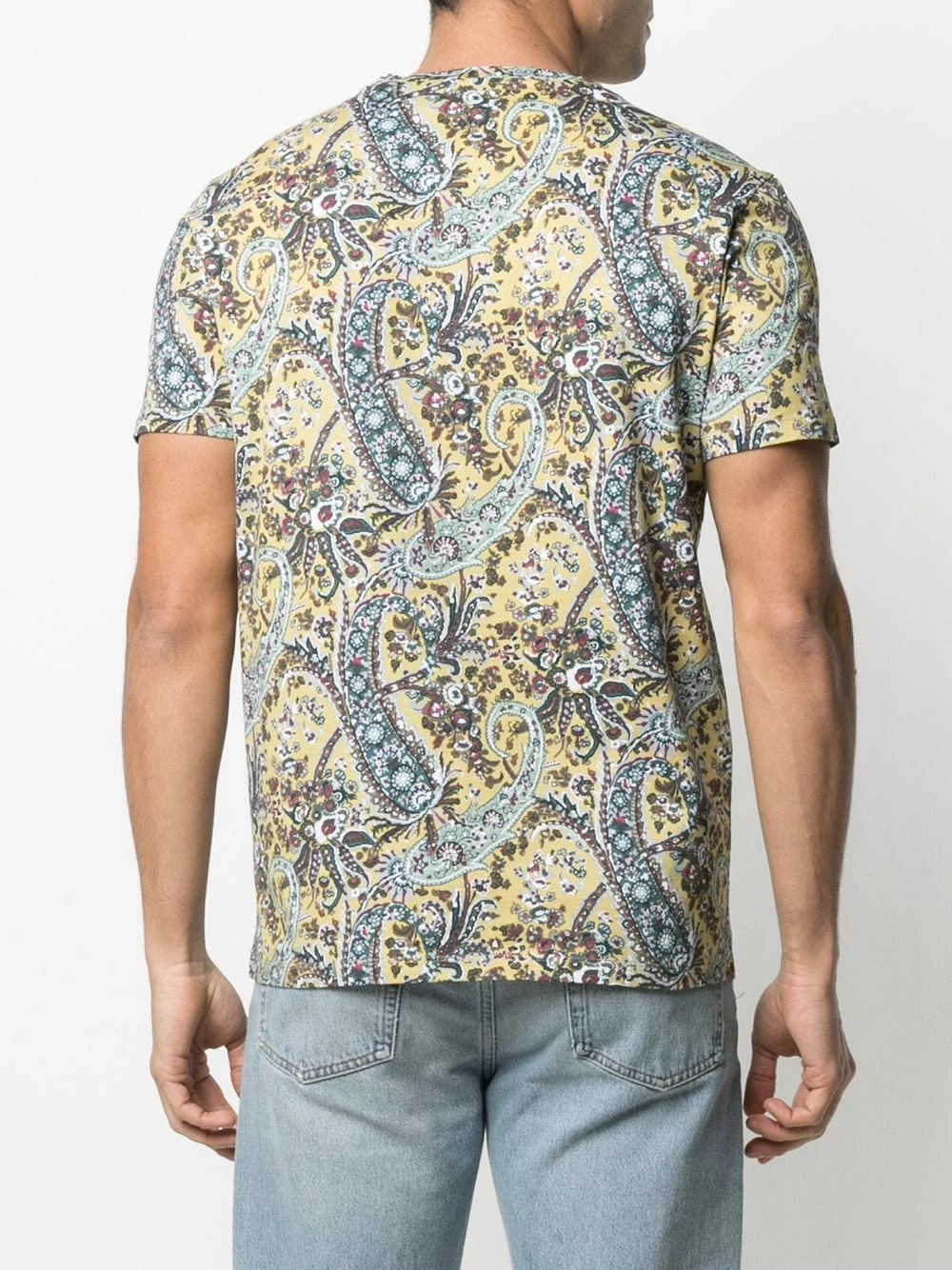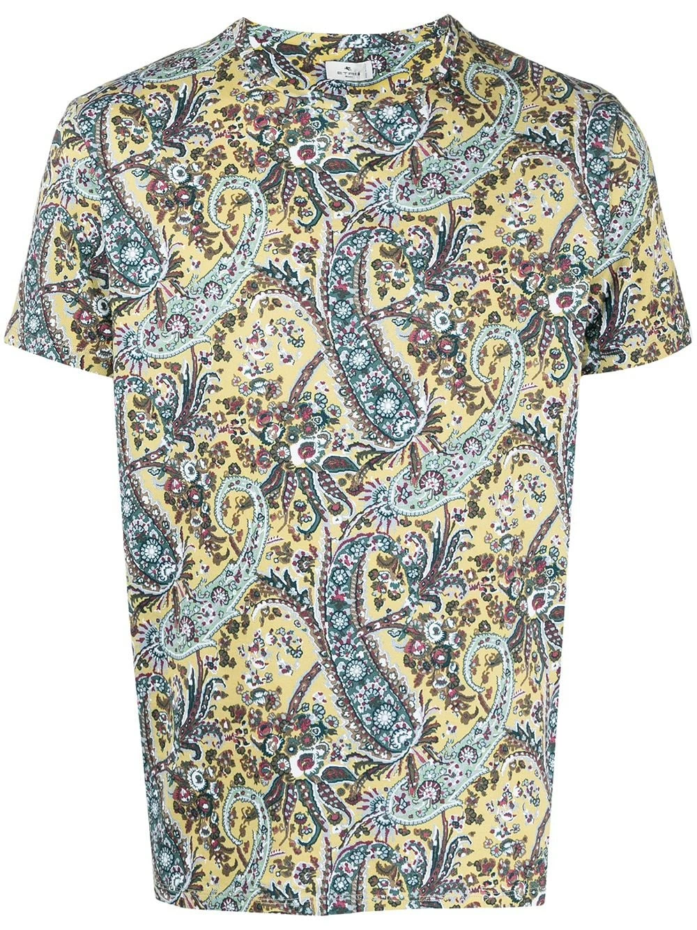 Tricot point jersey, motif cachemire, encolure ronde. Matière : coton.