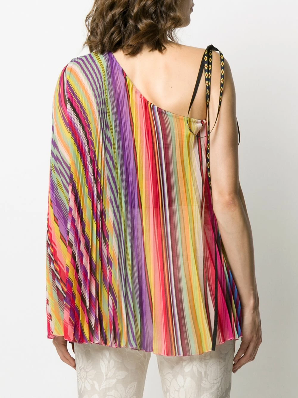Top plissé à rayures Etro avec design asymétrique à une épaule et silhouette asymétrique.