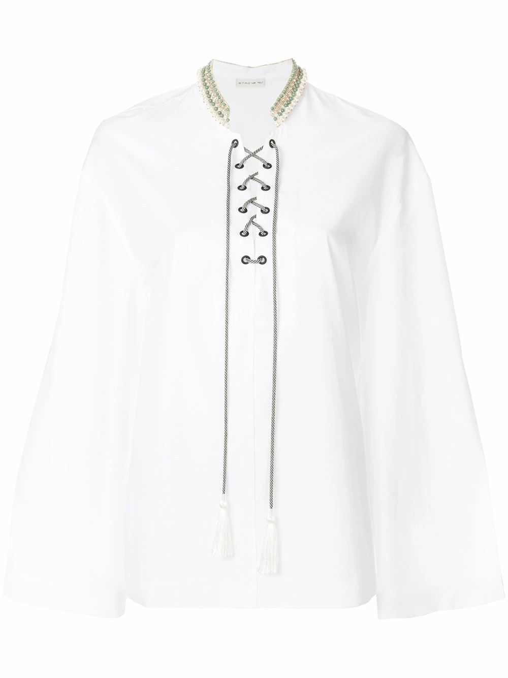 Embellished lace-up blouse ETRO. Couleur : blanc.
