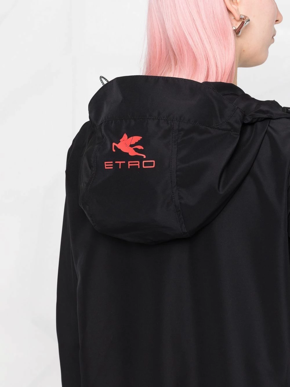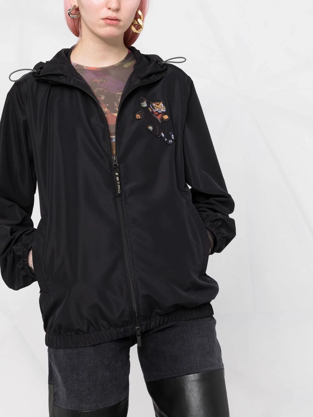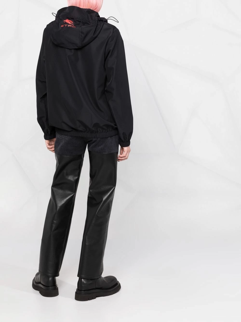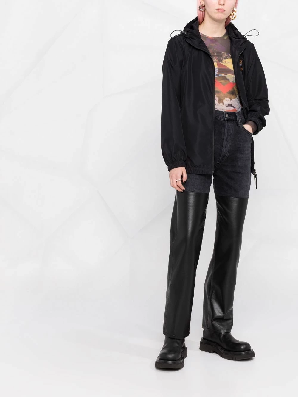 Capuche à lien de resserrage, poches latérales fendues, fermeture zippée devant, manches longues. Couleur : noir.