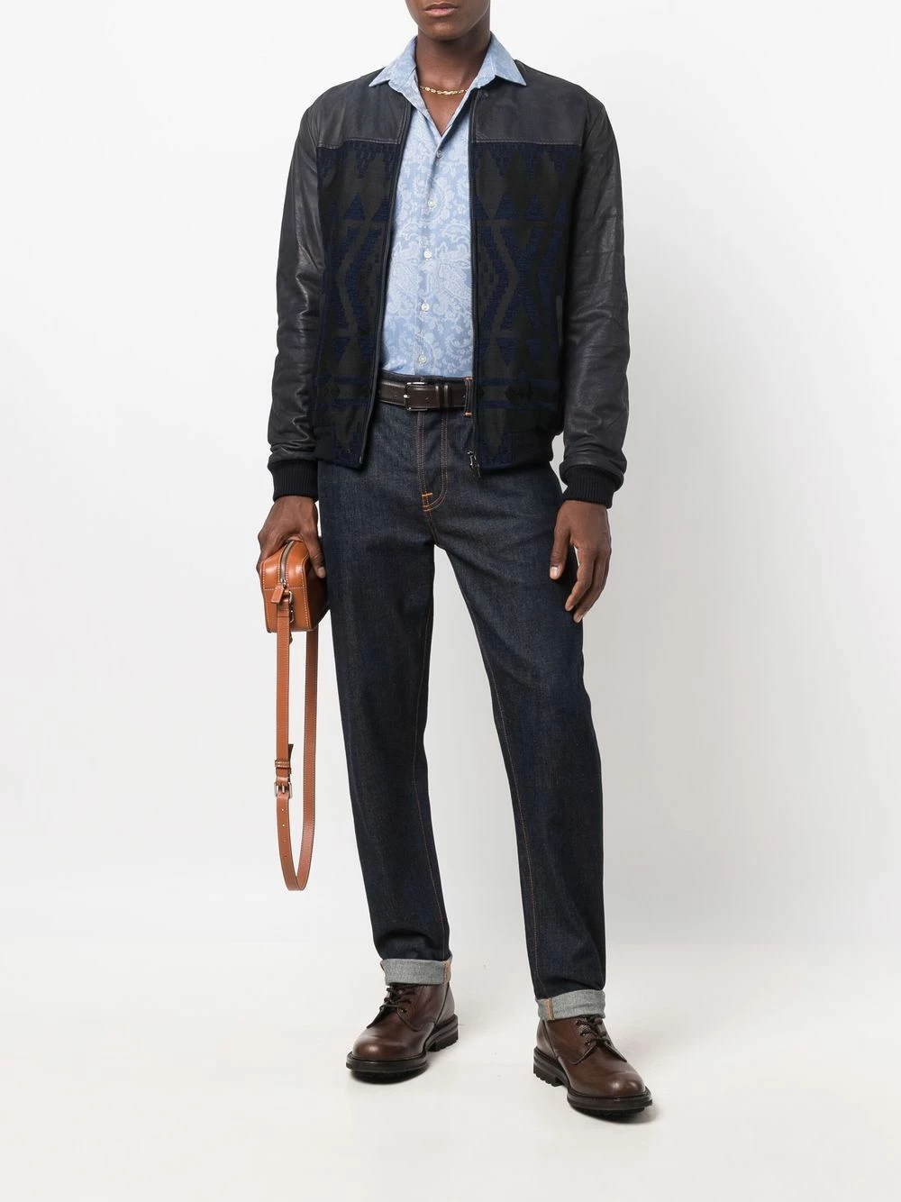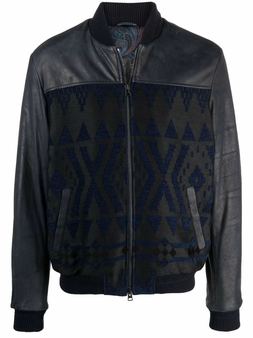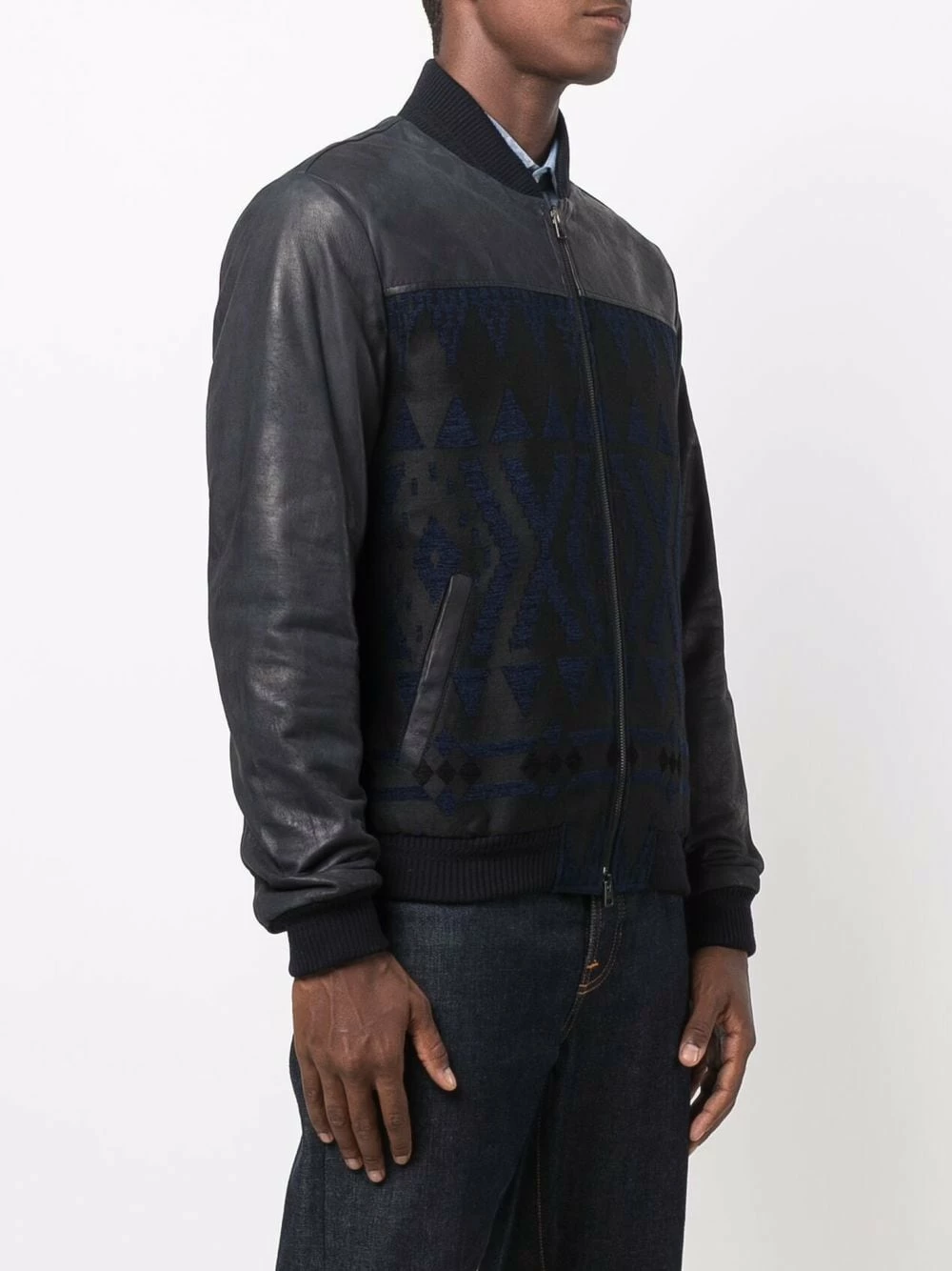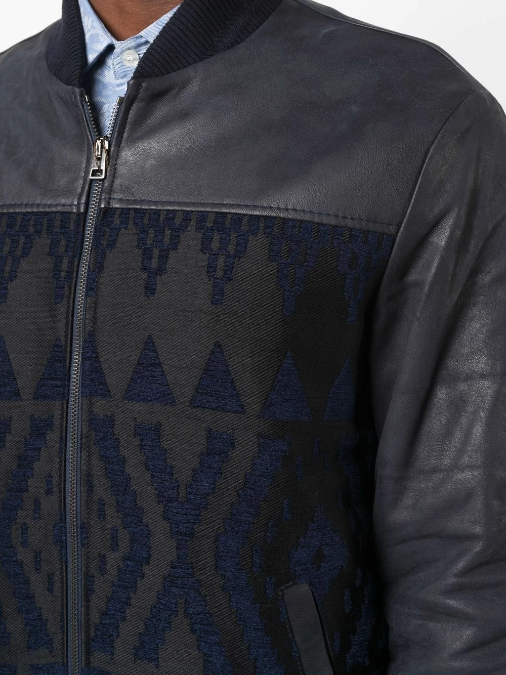 Design à empiècements, détail nervuré, col style baseball, fermeture zippée devant, deux poches latérales fendues, manches longues, ourlet droit. Matière : peau de mouton.