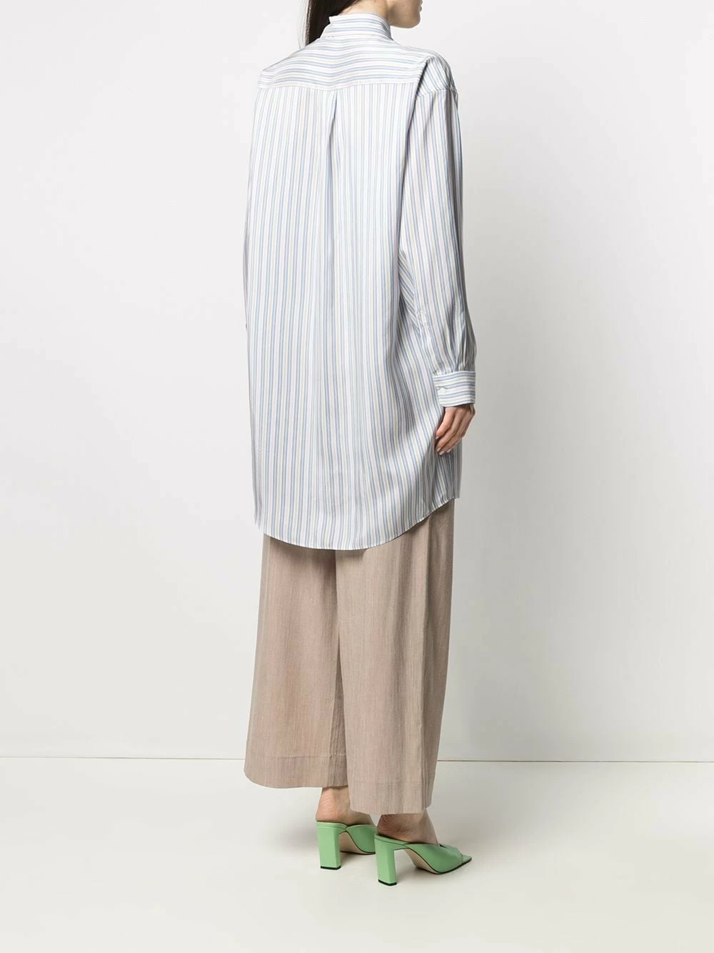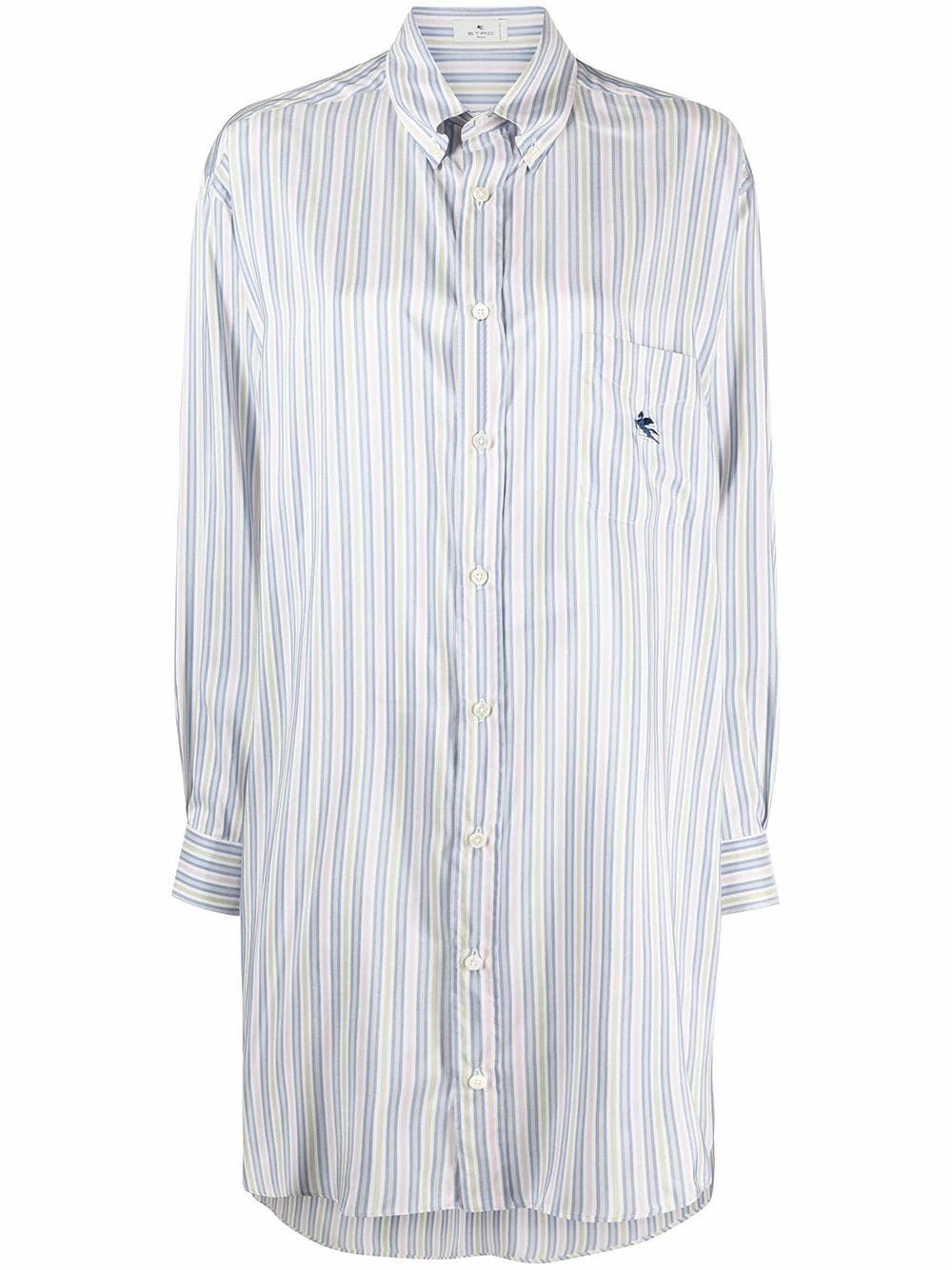Logo brodée sur la poitrine, imprimé à rayures, col boutonné, manches longues, manches à poignets resserrés. Matière : soie.