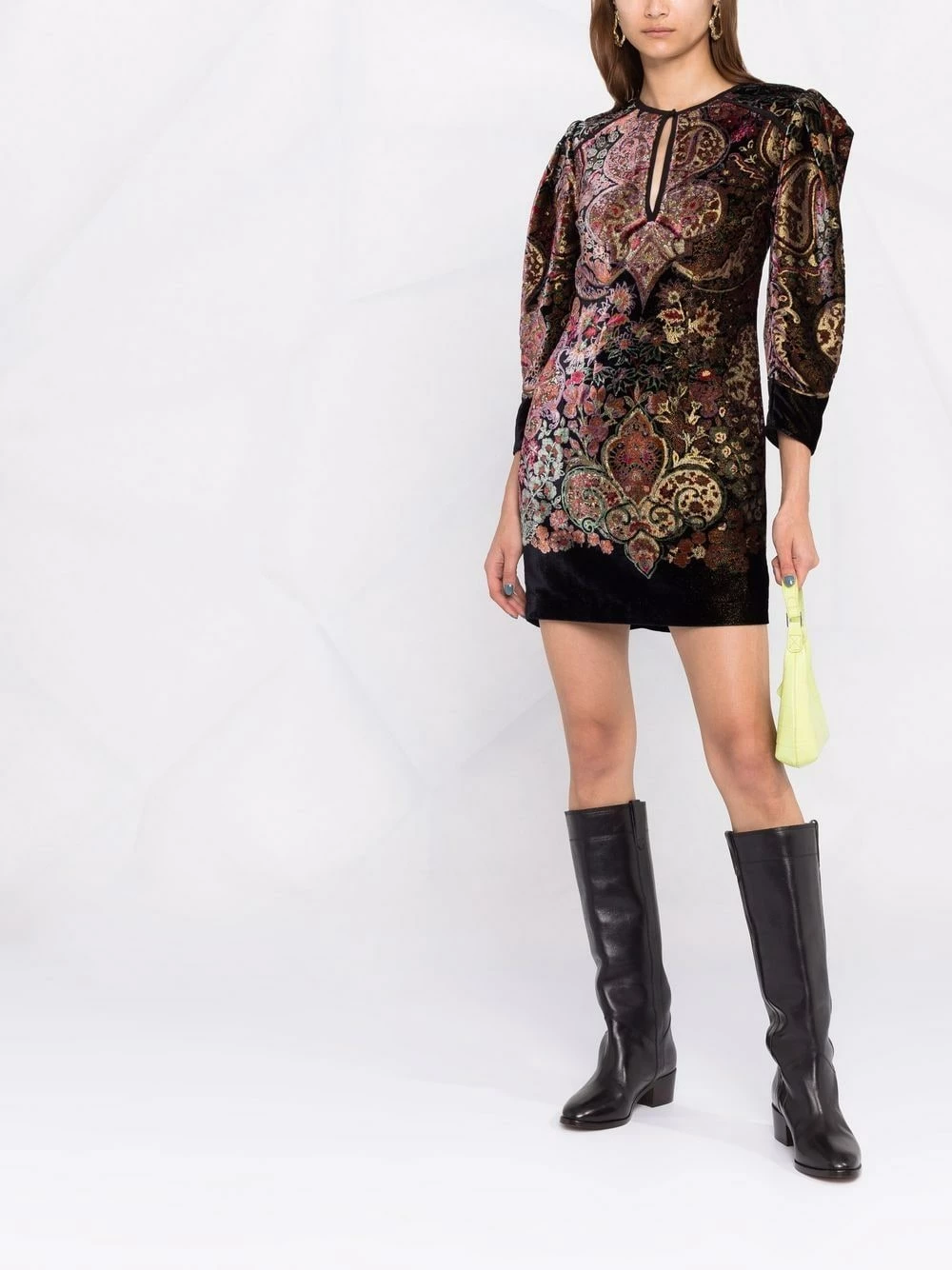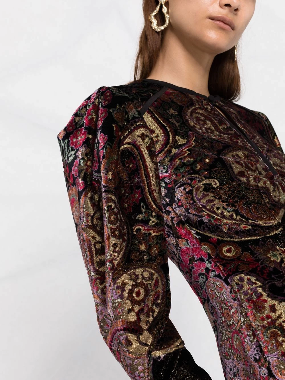 Motif cachemire, velours, encolure ronde, manches longues. Couleur : multicolore.