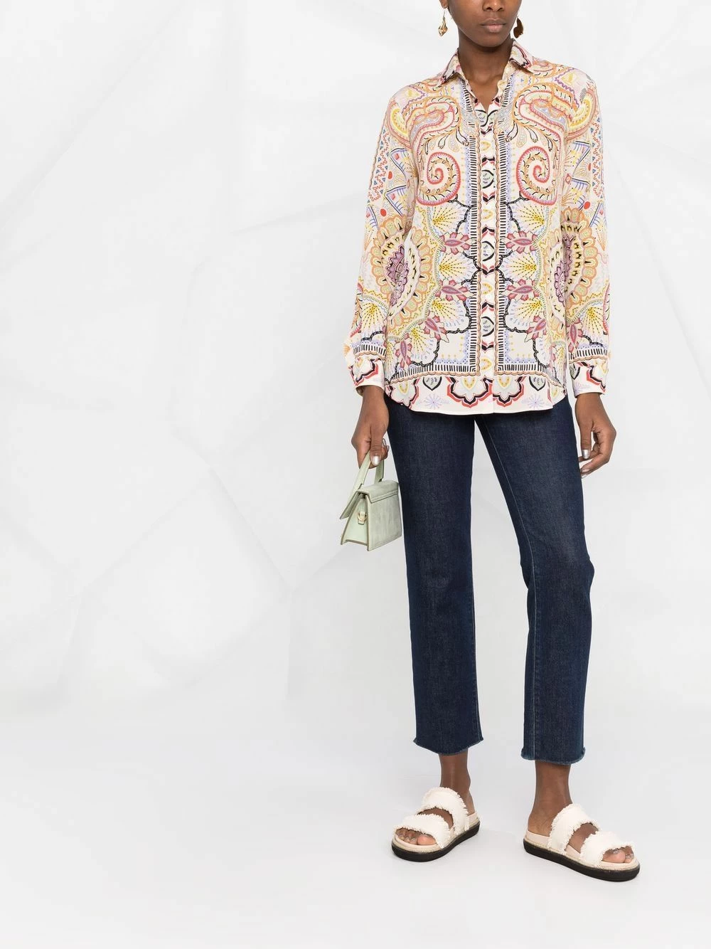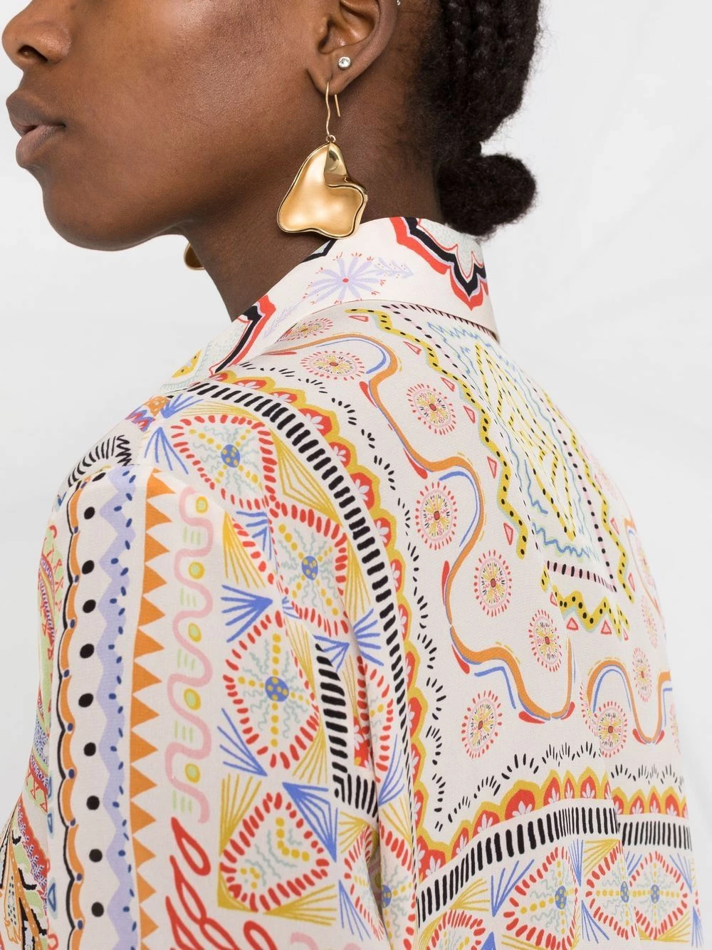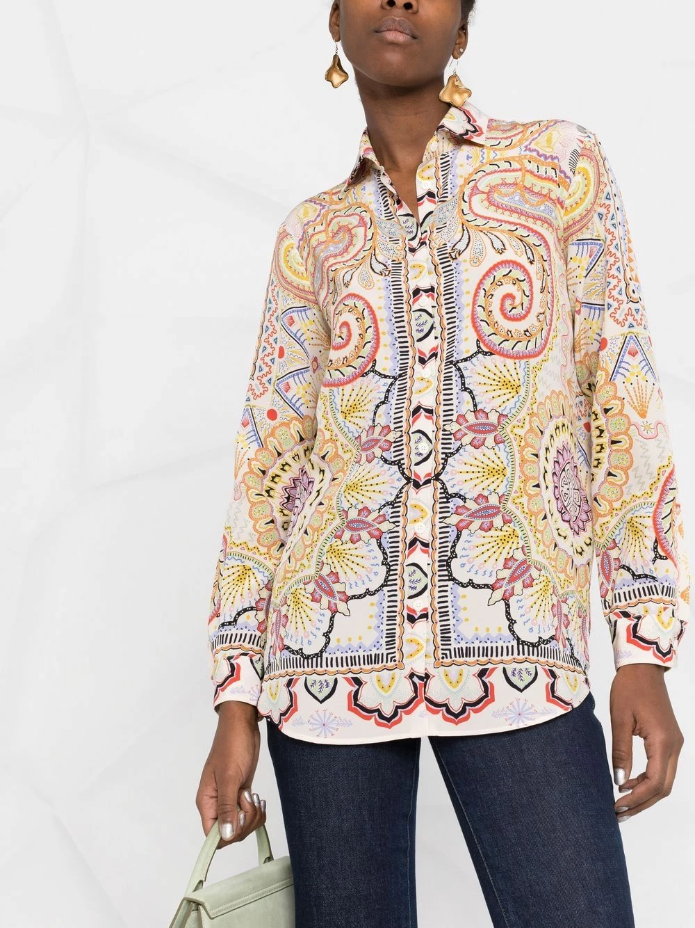 Col classique, boutonnière sur le devant, ourlet incurvé, manches longues, poignets boutonnés. Couleur : multicolore. Matière : soie.