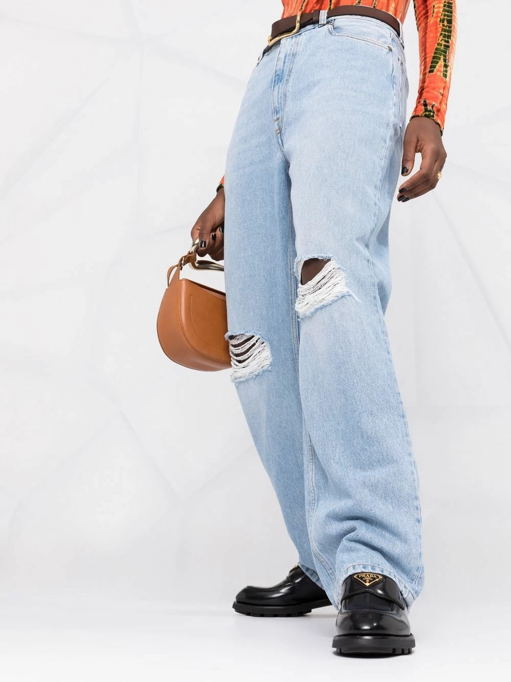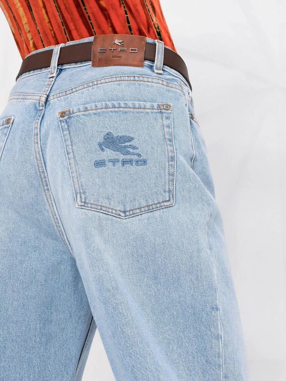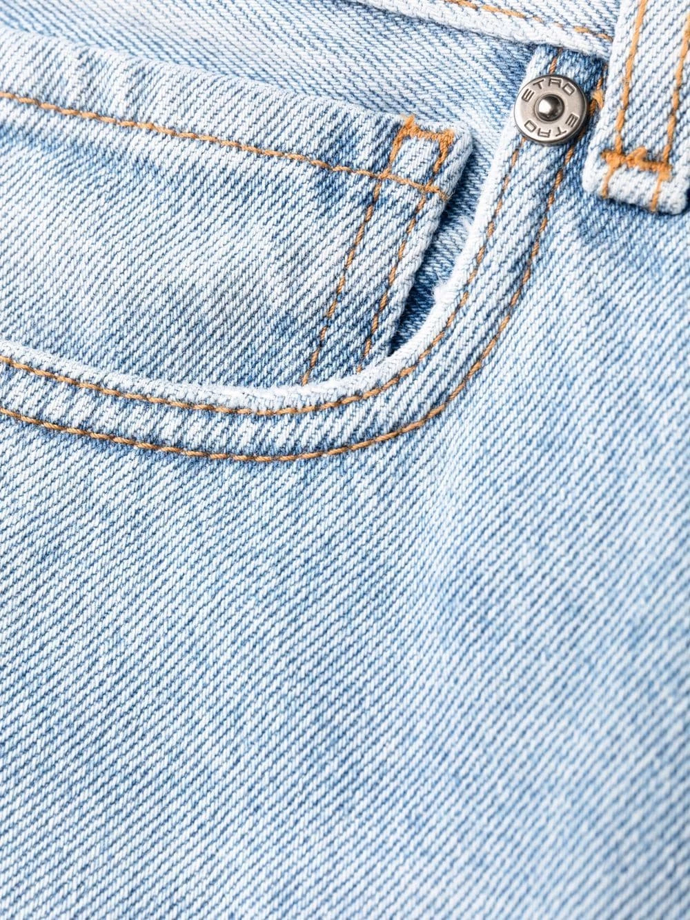 Logo brodé, effet usé, taille haute, passants de ceinture, fermeture dissimulée sur le devant. Matière : coton.