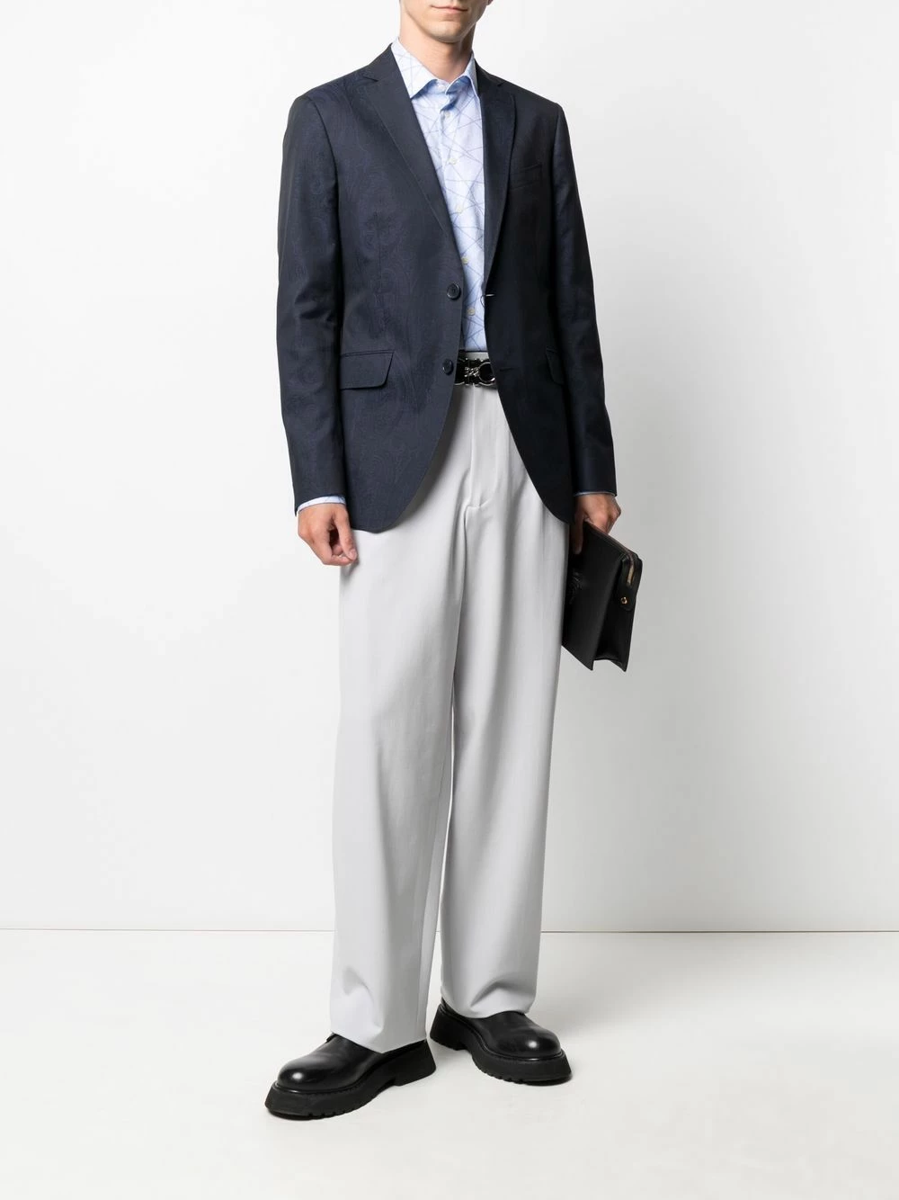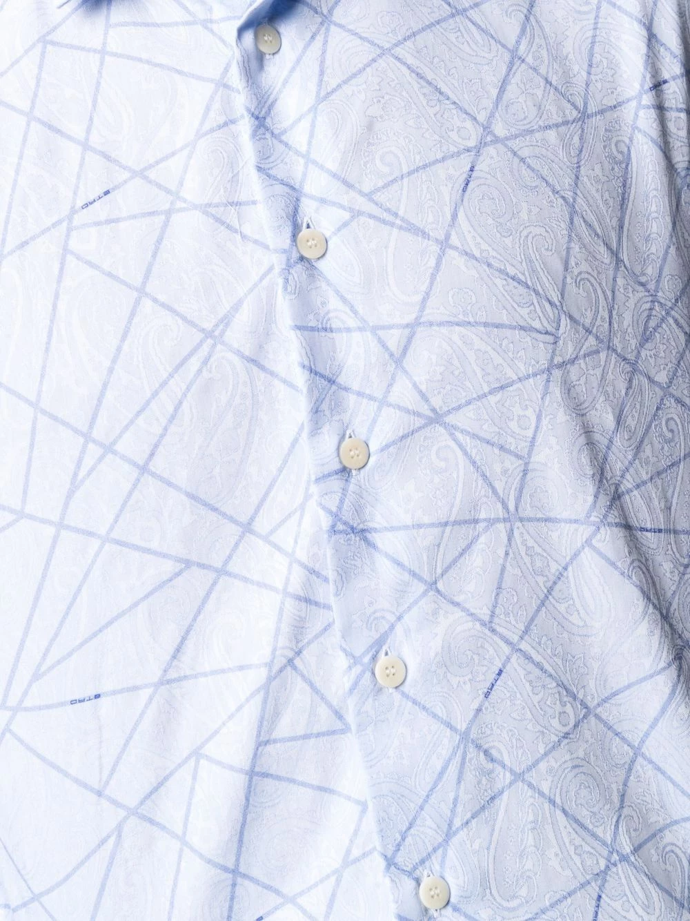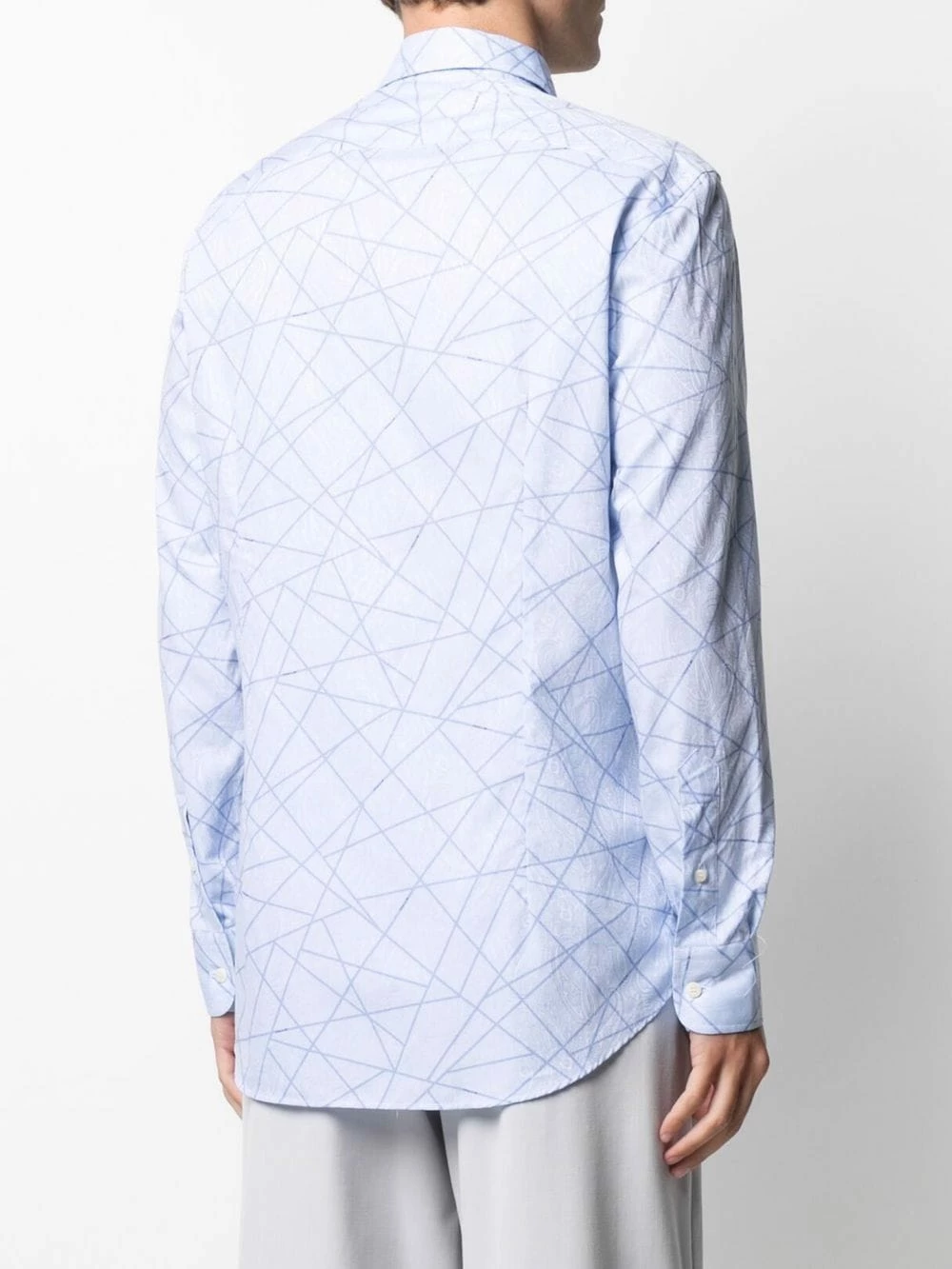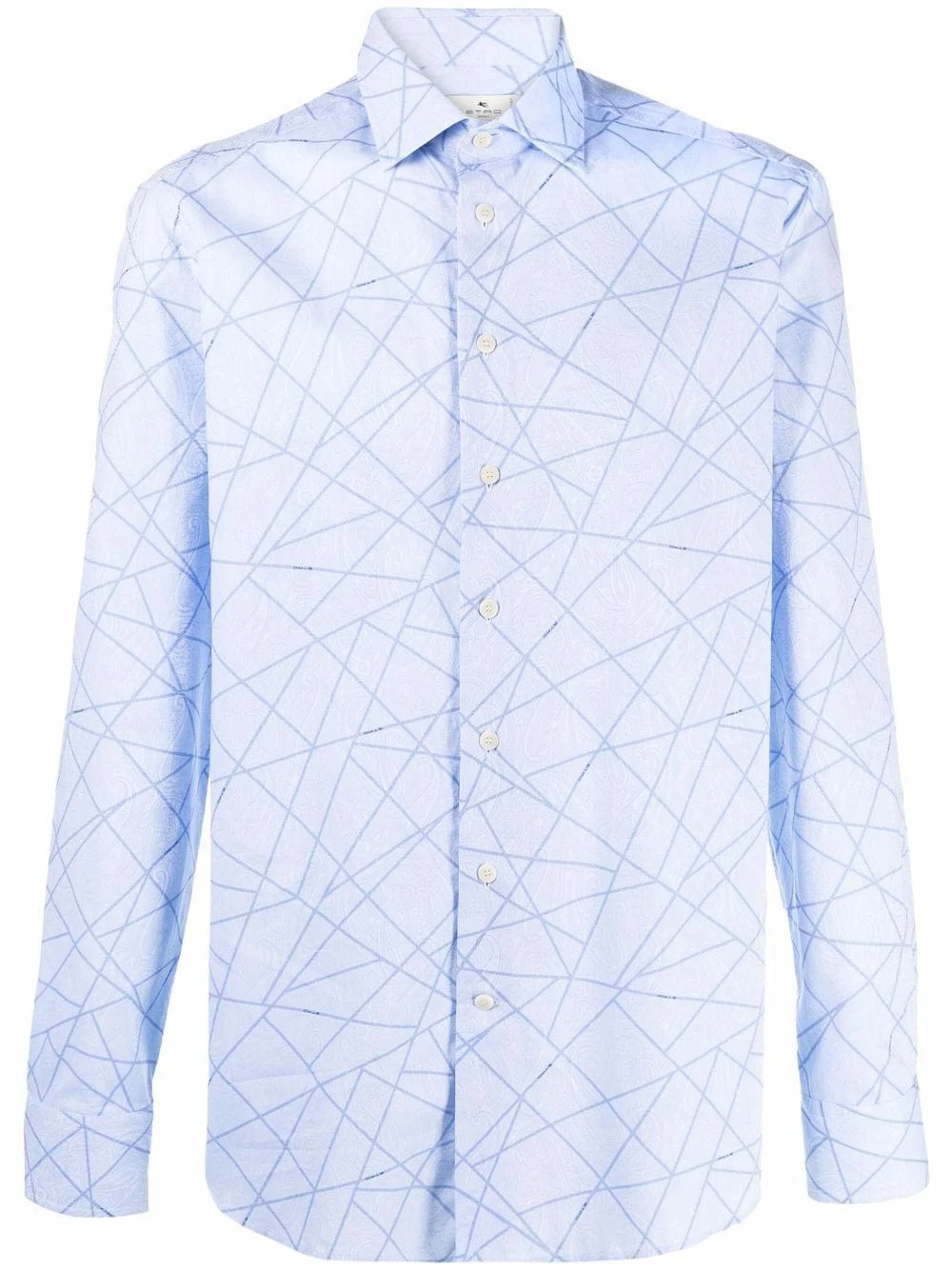 Imprimé à rayures, motif cachemire, col classique, boutonnière sur le devant, manches à poignets boutonnés, ourlet incurvé au dos. Couleur : bleu. Matière : coton.