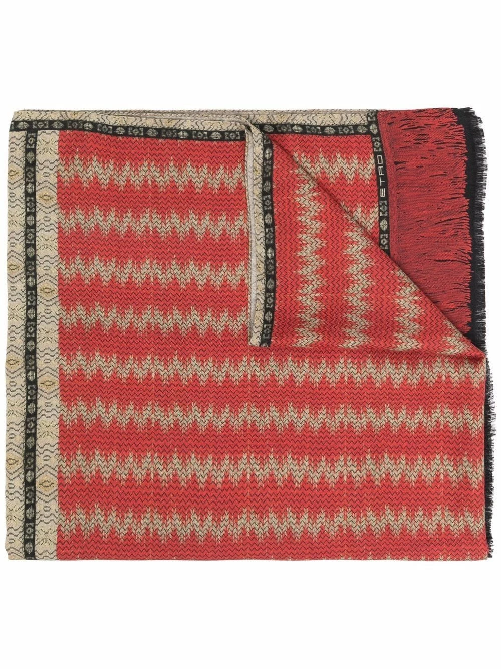 Motif cachemire, bordures à logo imprimé, bords frangés.