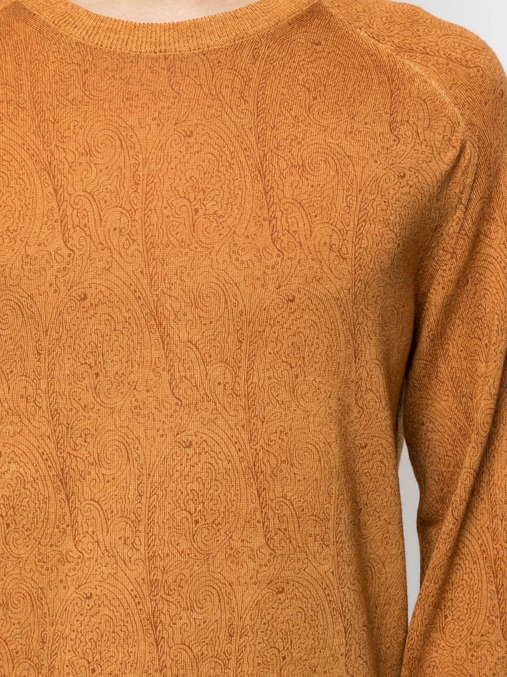 Maille fine, bordures nervurées, poignets nervurés, motif cachemire, encolure ras du cou, manches longues. Couleur : orange.