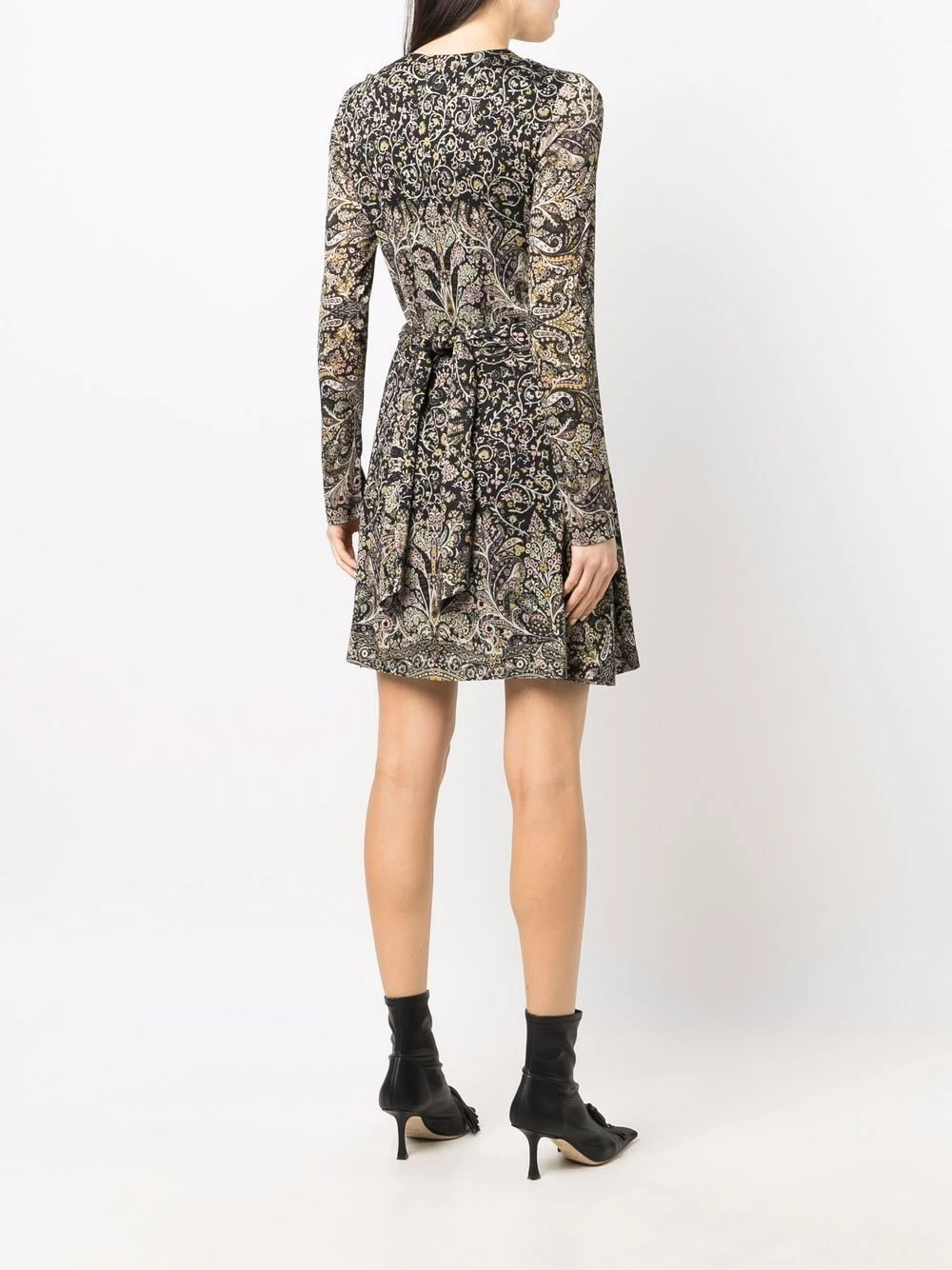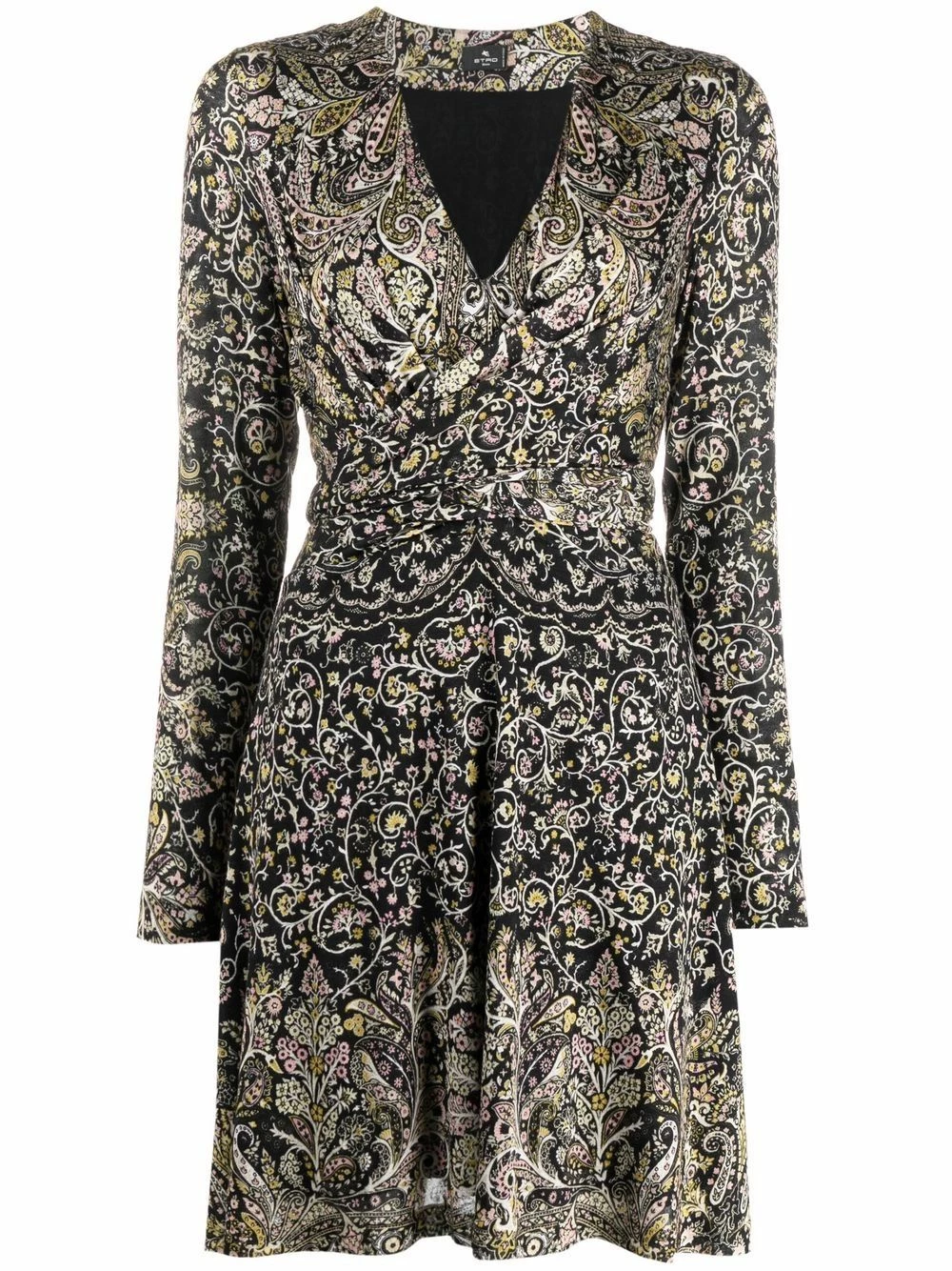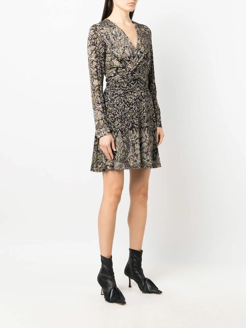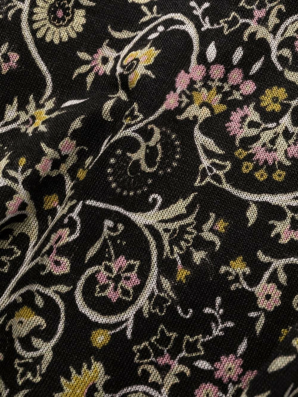 Construction stretch, taille ajustée, imprimé à fleurs, col v, manches longues. Couleur : noir.