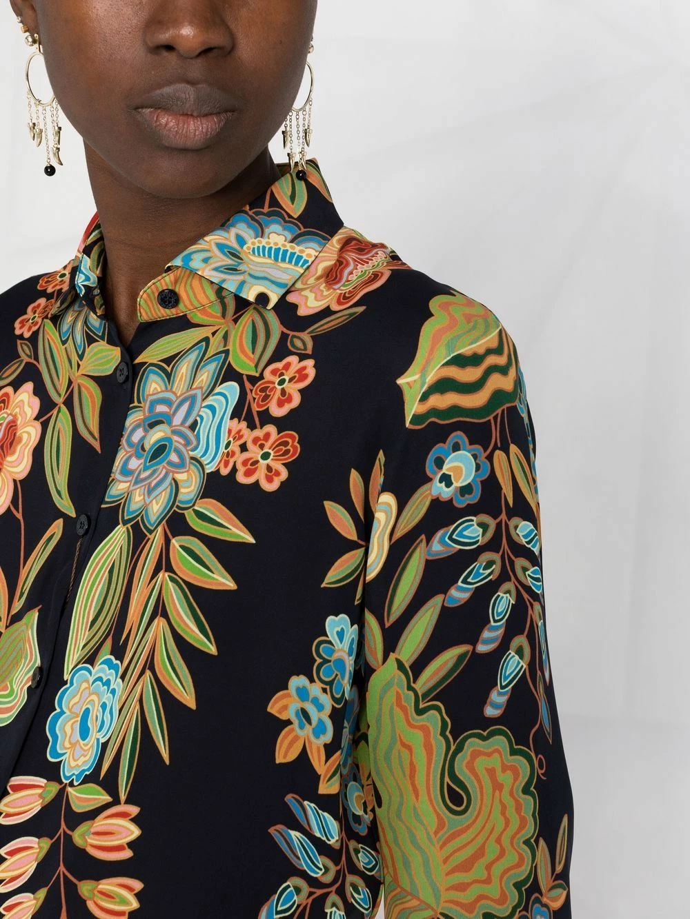 Imprimé à fleurs, col classique, boutonnière sur le devant, manches longues, poignets boutonnés, ourlet incurvé. Matière : soie.