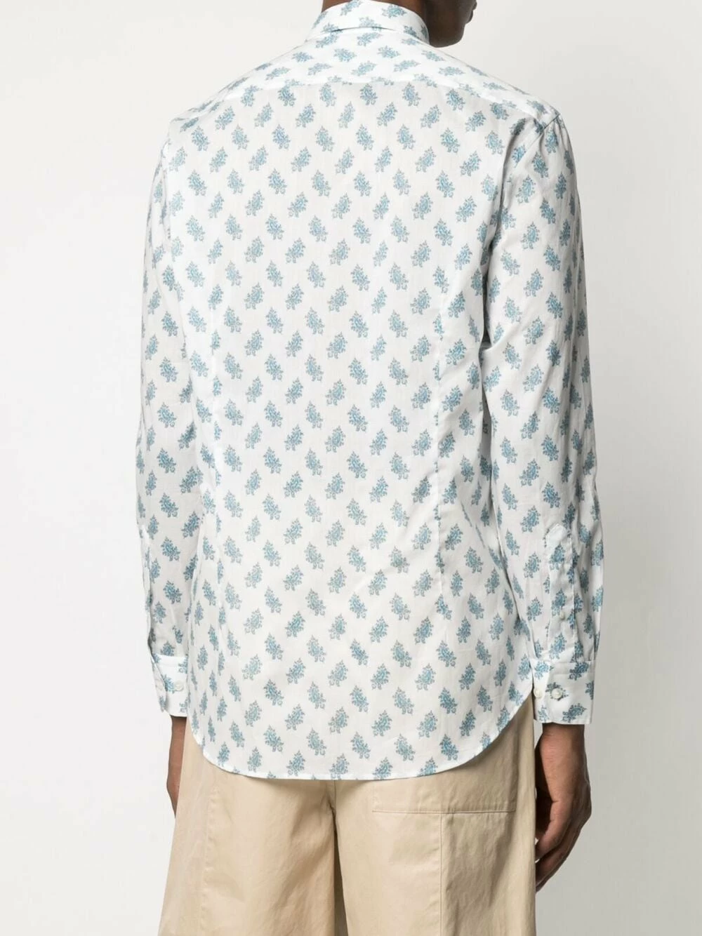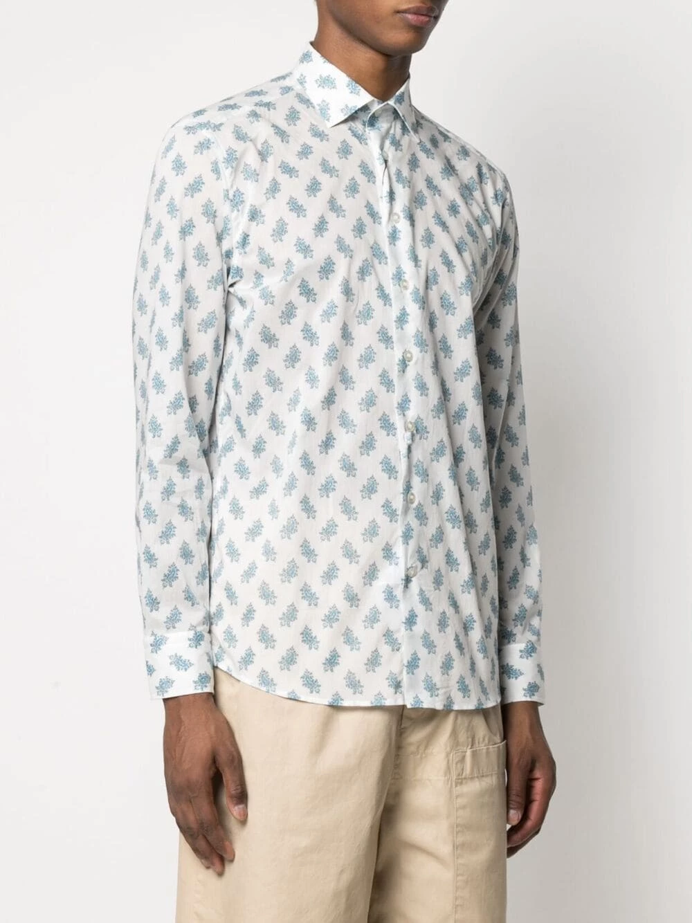 Motif cachemire, col classique, boutonnière sur le devant, manches longues, ourlet droit. Matière : coton.