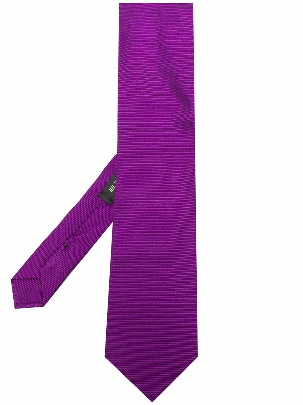 Cravate Pegaso brodée Etro avec design texturé, design en pointe et fermeture ajustable. Couleur : violet.