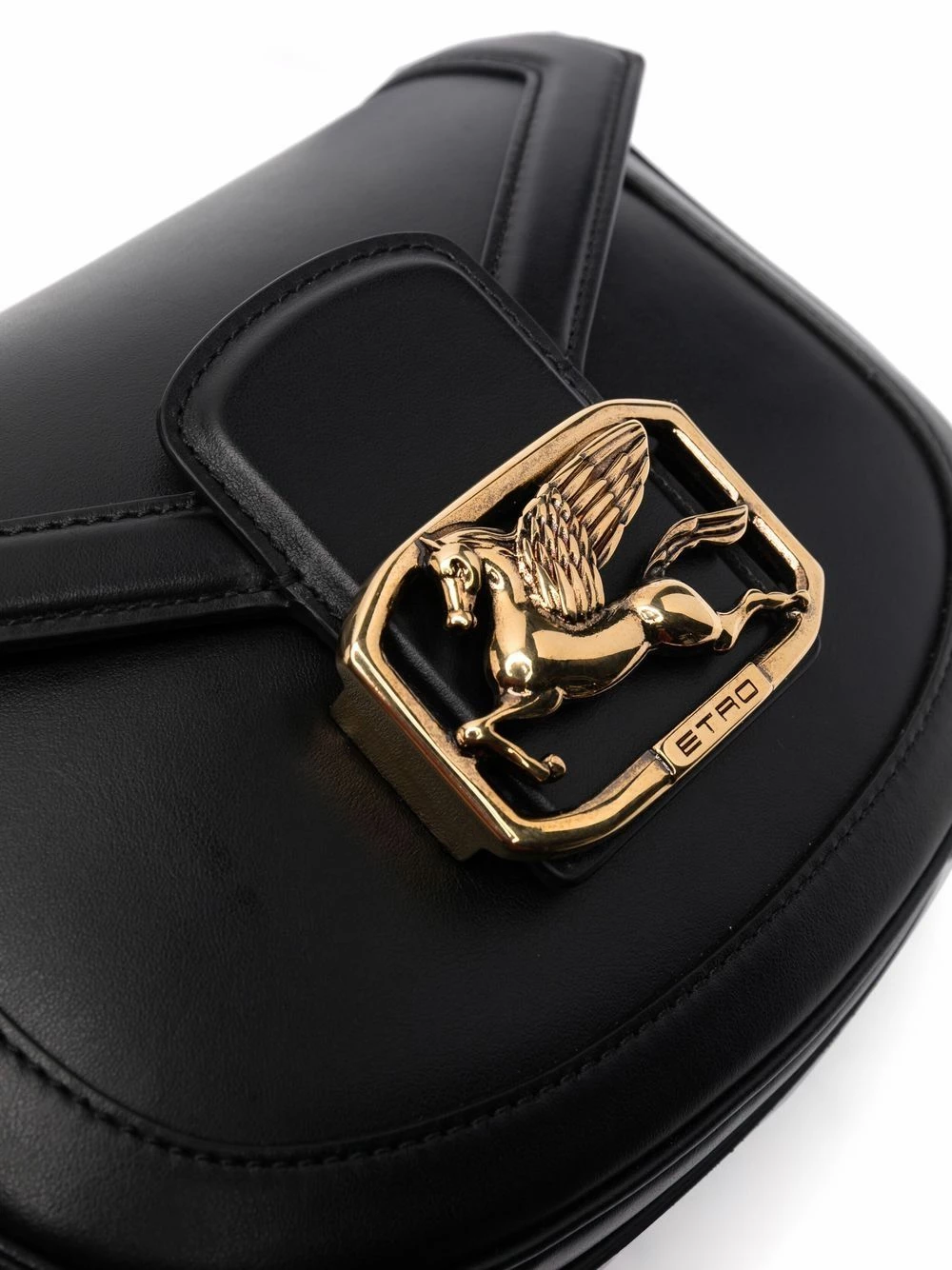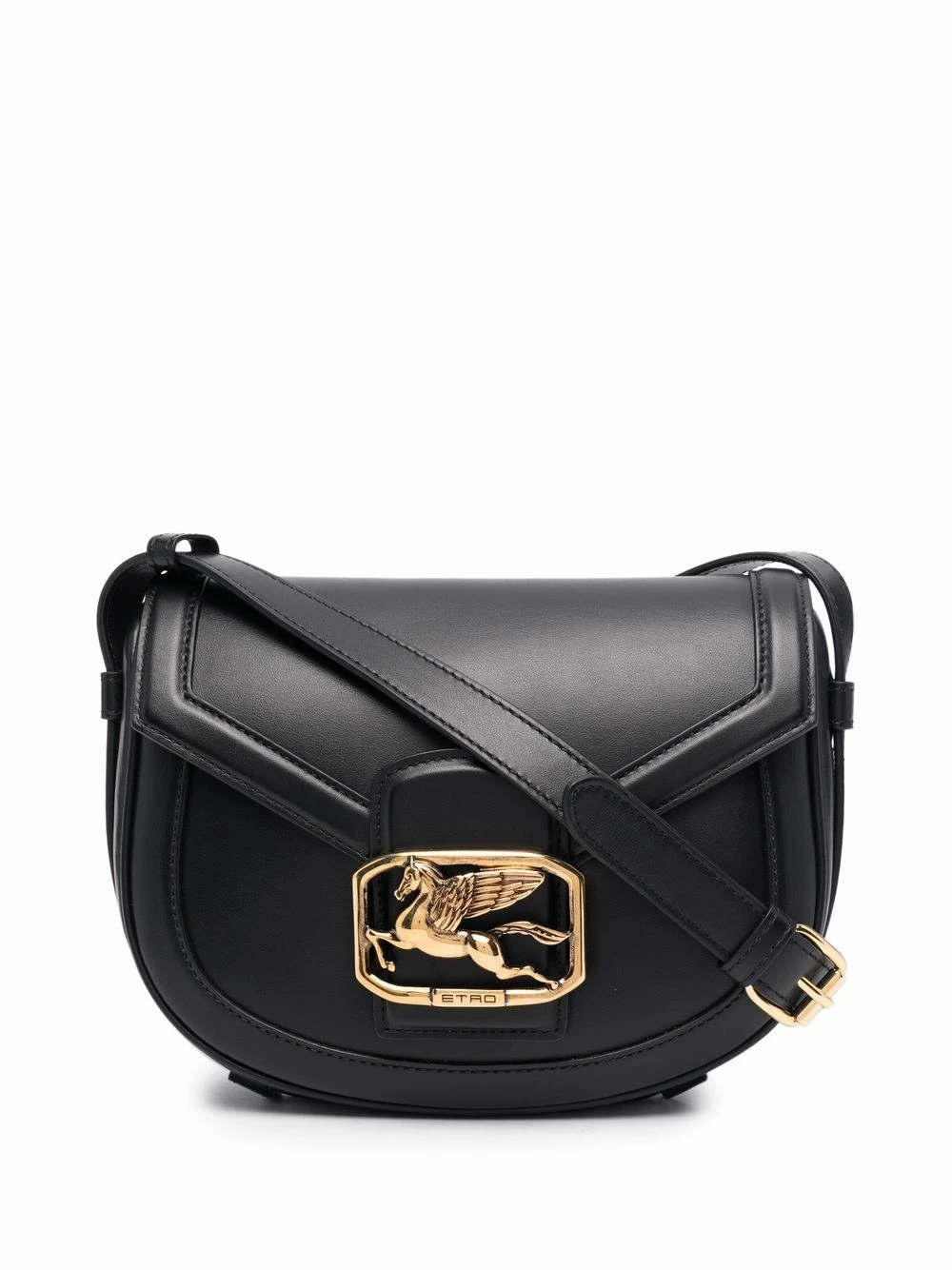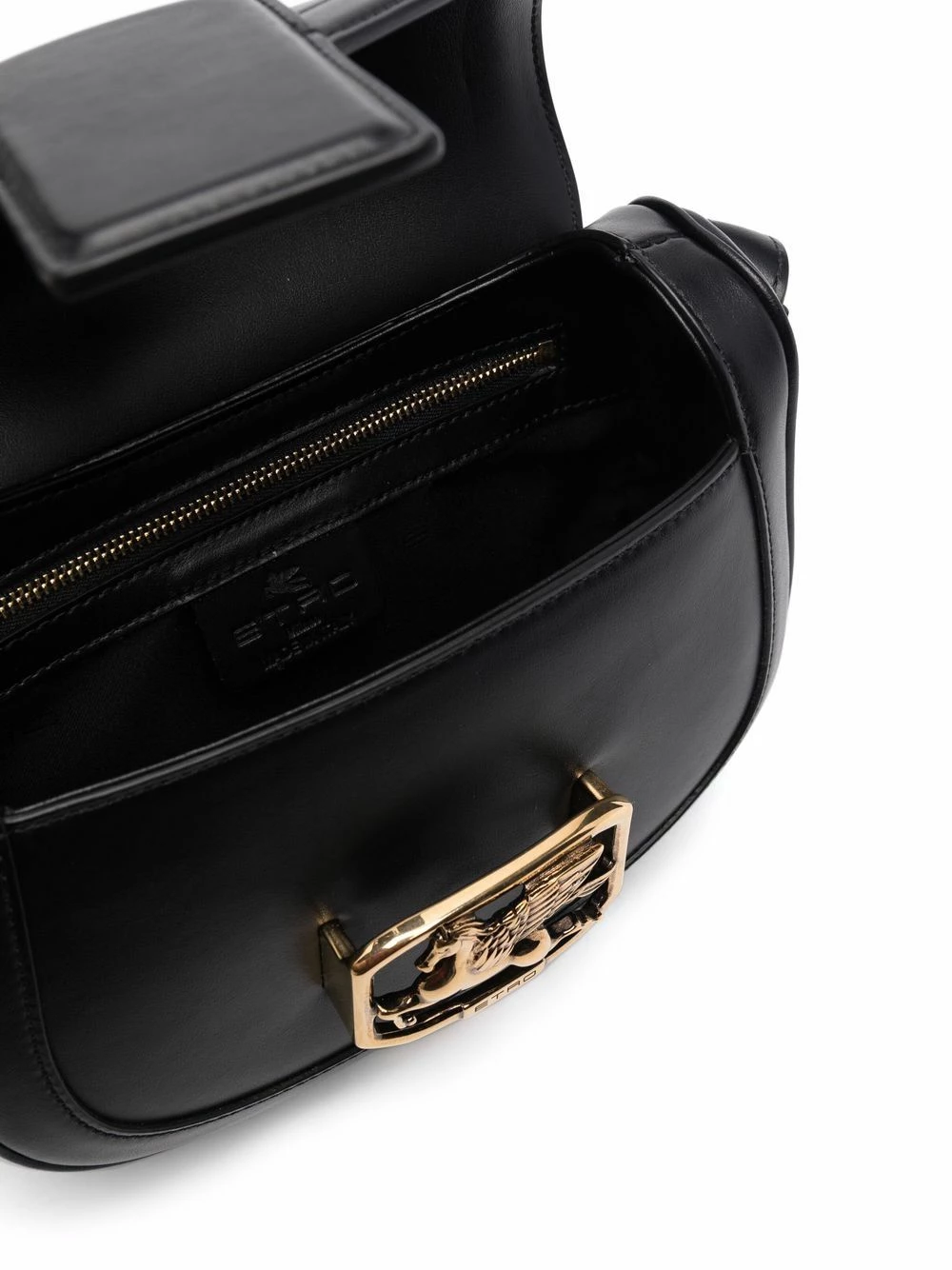 Plaque logo dorée, rabat sur le dessus, poche intérieure plaquée, bride porté épaule ajustable. Couleur : noir. Matière : cuir.