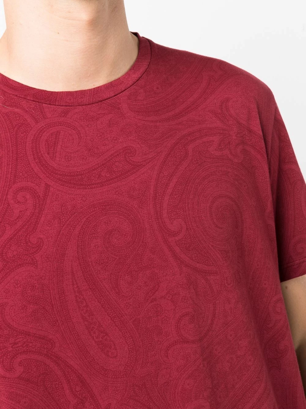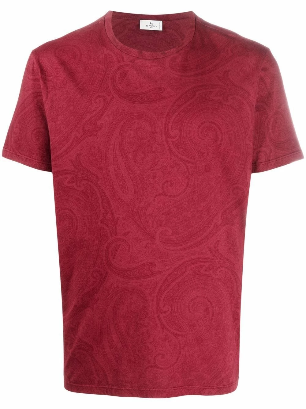 Motif cachemire, encolure ras du cou, manches courtes, ourlet droit. Couleur : rouge. Matière : coton.