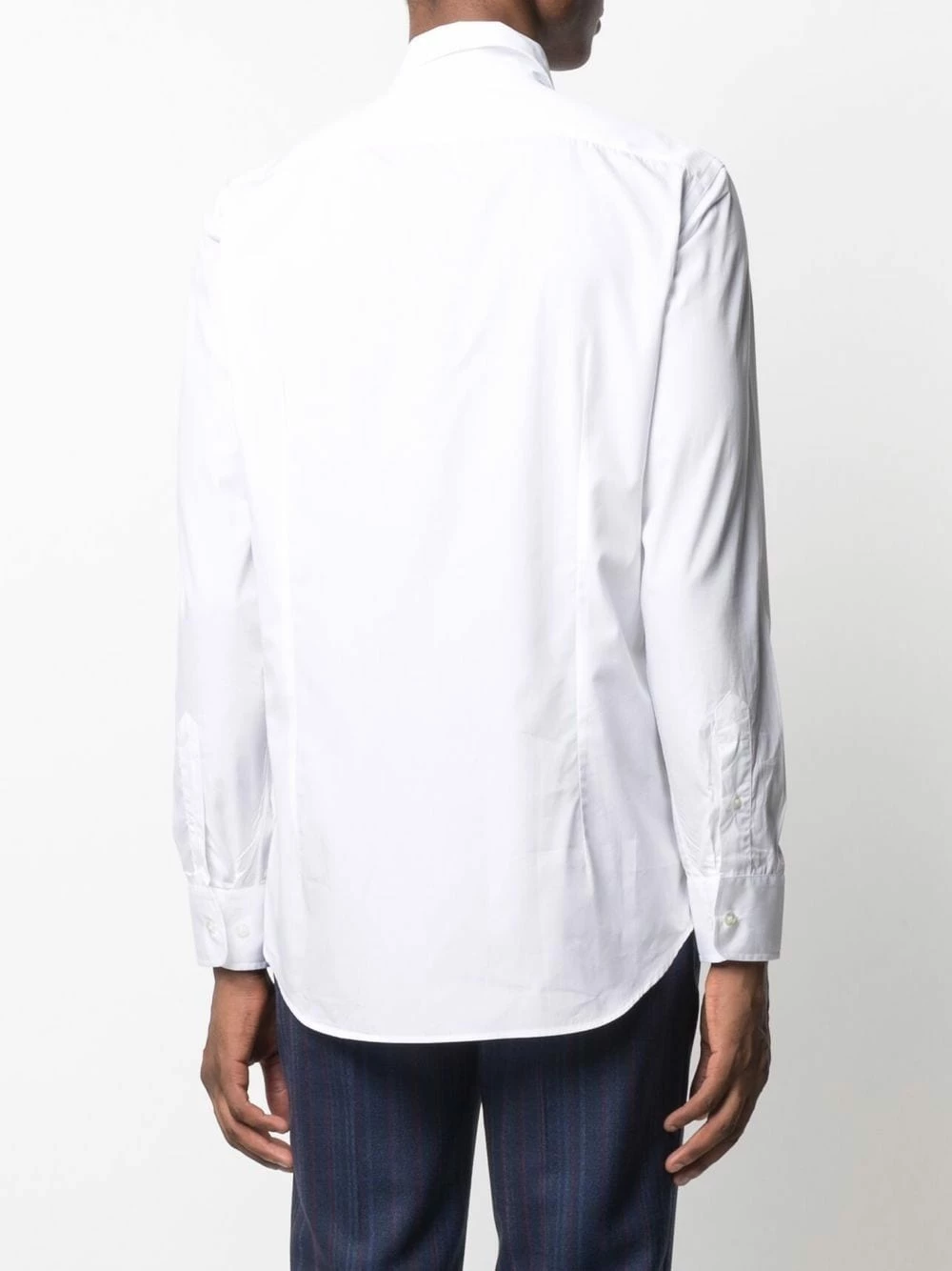 Col classique, boutonnière sur le devant, ourlet incurvé, pinces, manches à poignets boutonnés. Couleur : blanc. Matière : coton.