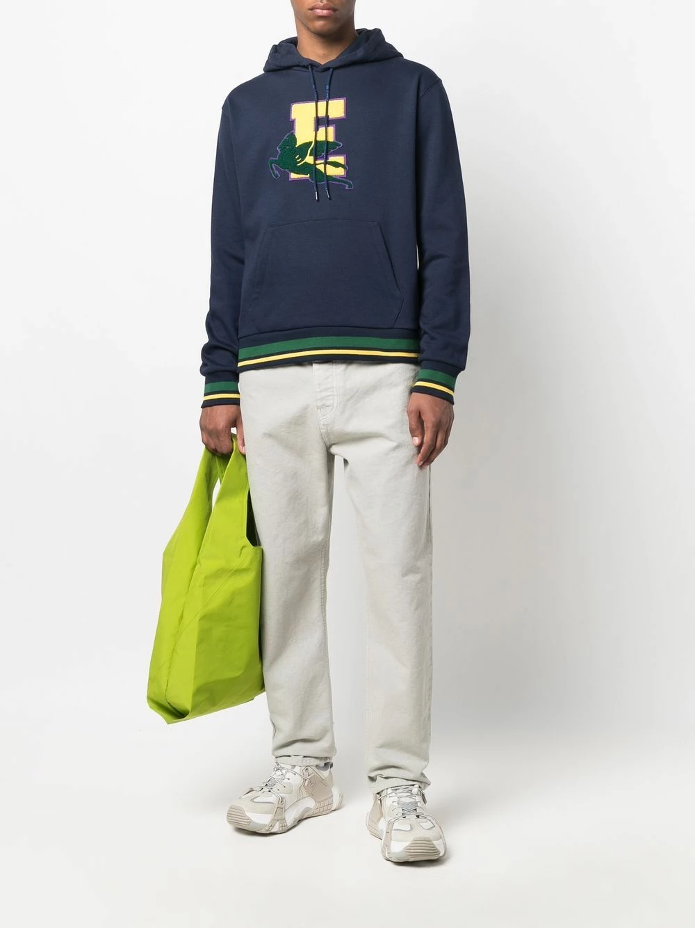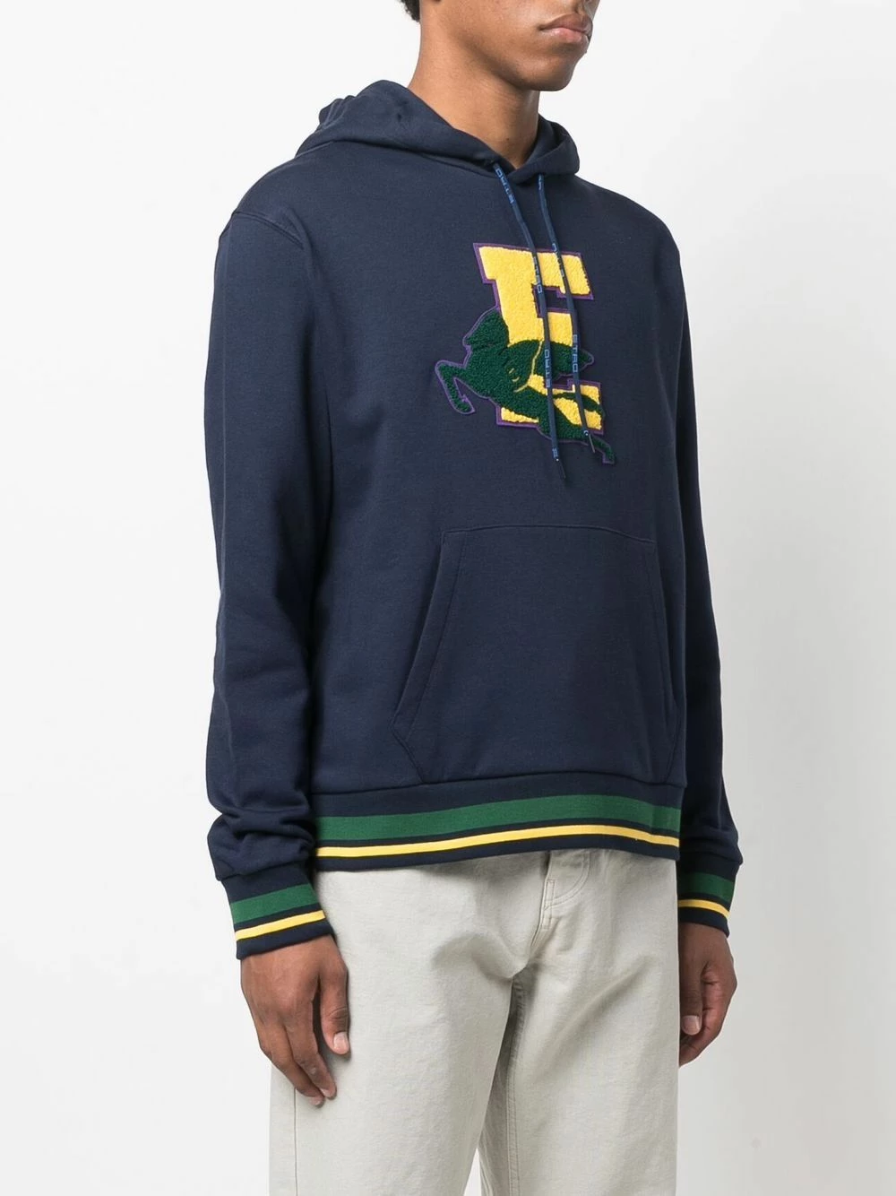 Appliqué logo, finitions rayées, capuche à lien de resserrage, poche plaquée sur le devant, manches longues, ourlet droit. Matière : coton mélangé.