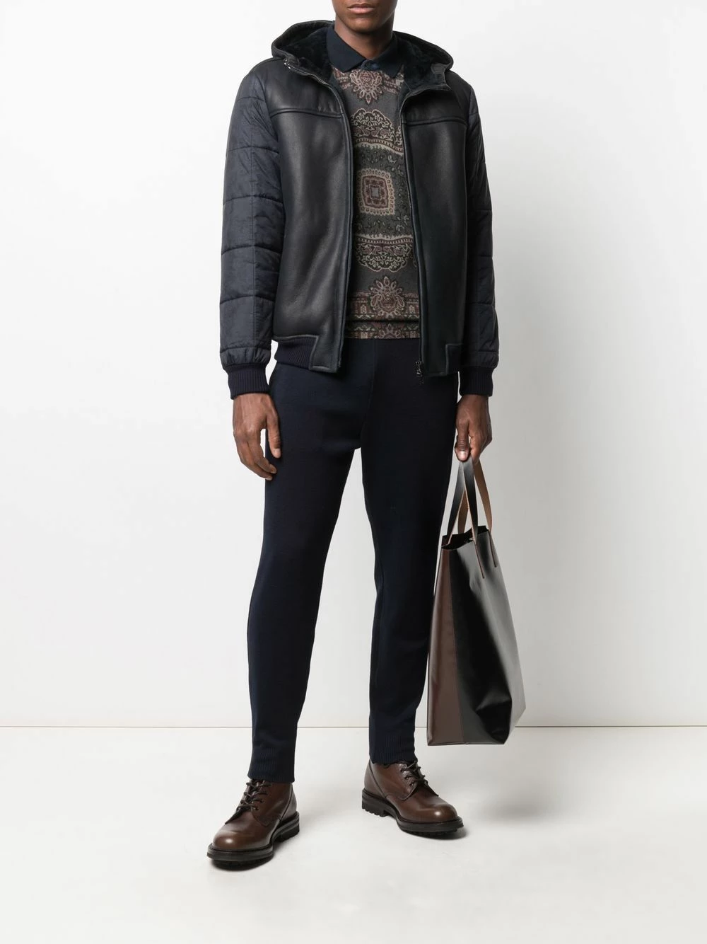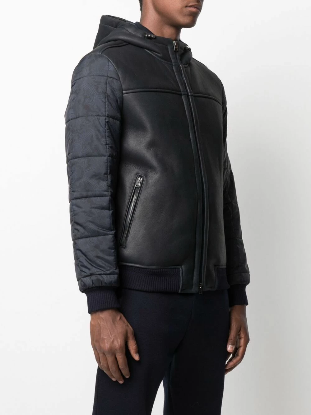 Motif cachemire, manches à tissu contrastant, capuche à lien de resserrage, fermeture zippée devant, poches à fermeture zippée devant, ourlet nervuré.