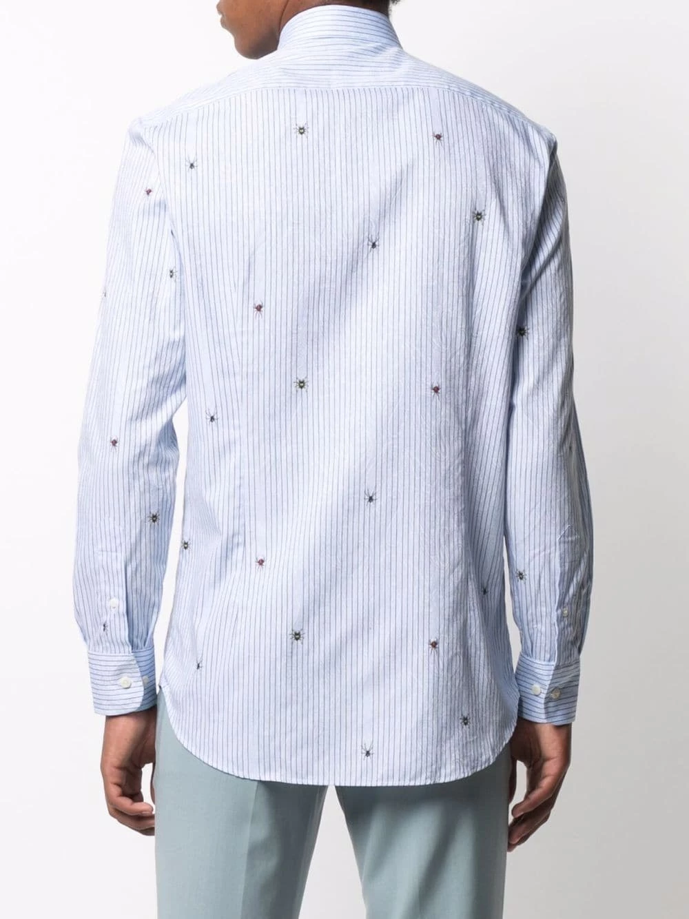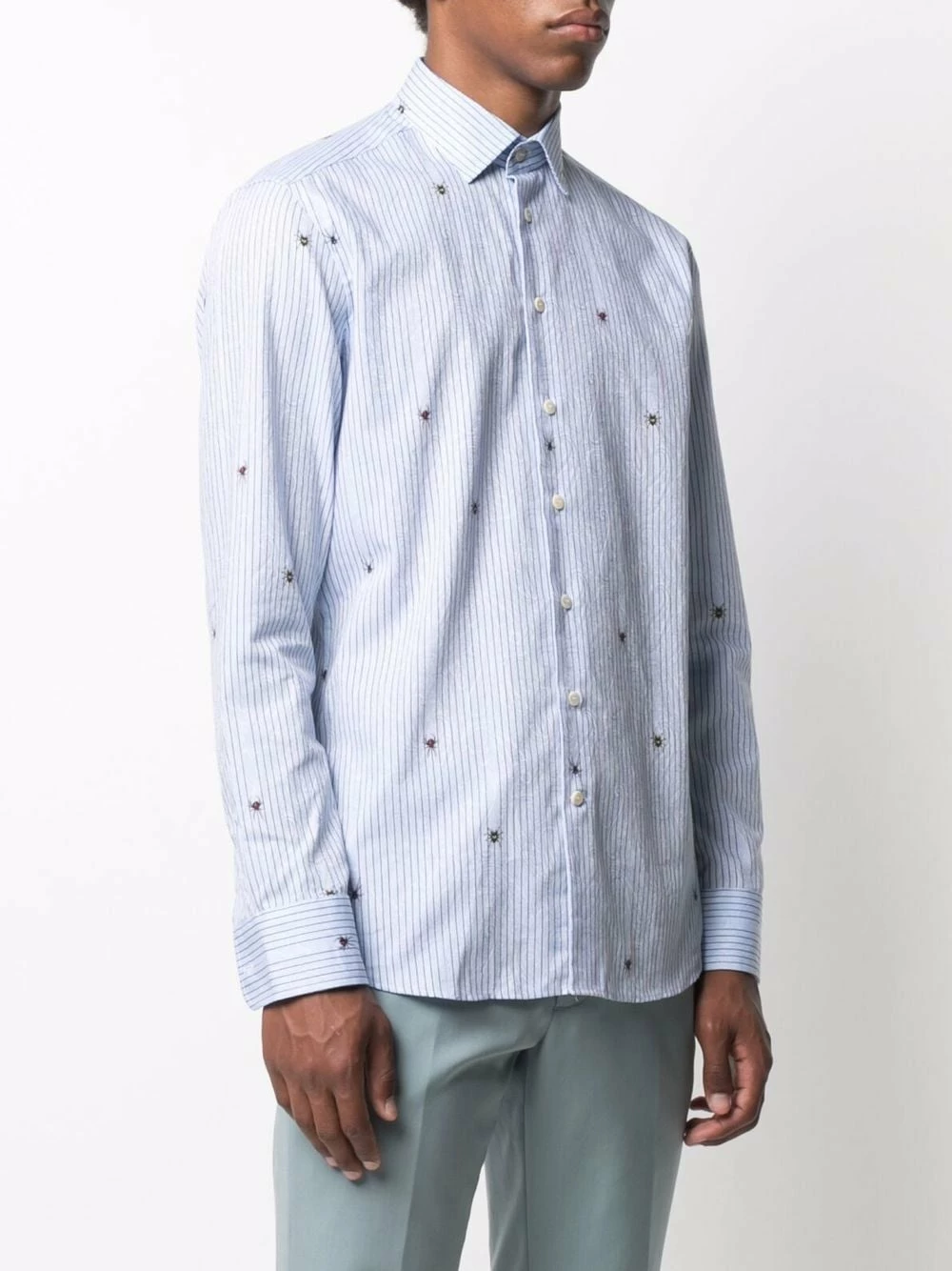 Rayures verticales imprimées, col classique, patte de boutonnage sur le devant, manches longues, poignets boutonnés, ourlet incurvé. Matière : coton.