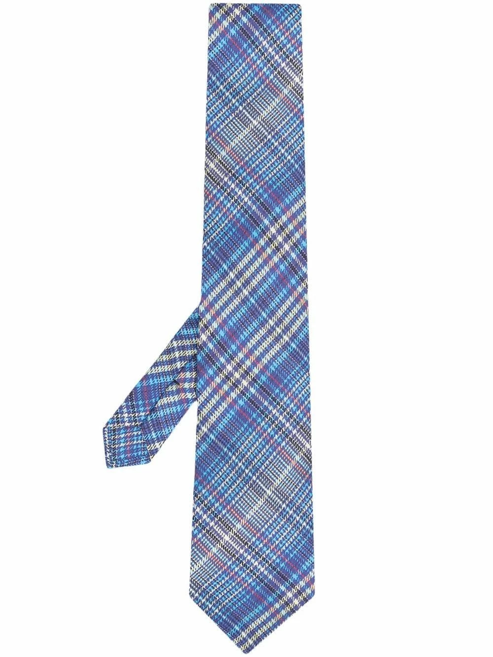 Imprimé carreaux, bout pointu, taille ajustable. Couleur : bleu. Matière : soie.