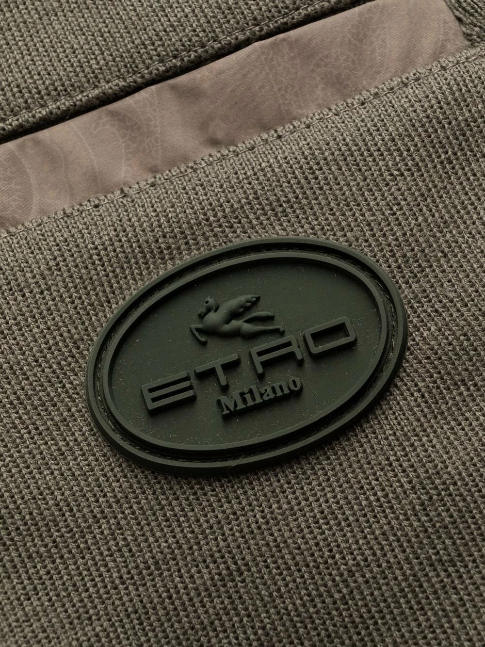 Ruban à imprimé cachemire, patch logo sur l’arrière, taille élastique à lien de resserrage, chevilles élastiques, poche arrière passepoilée, poches latérales fendues.
