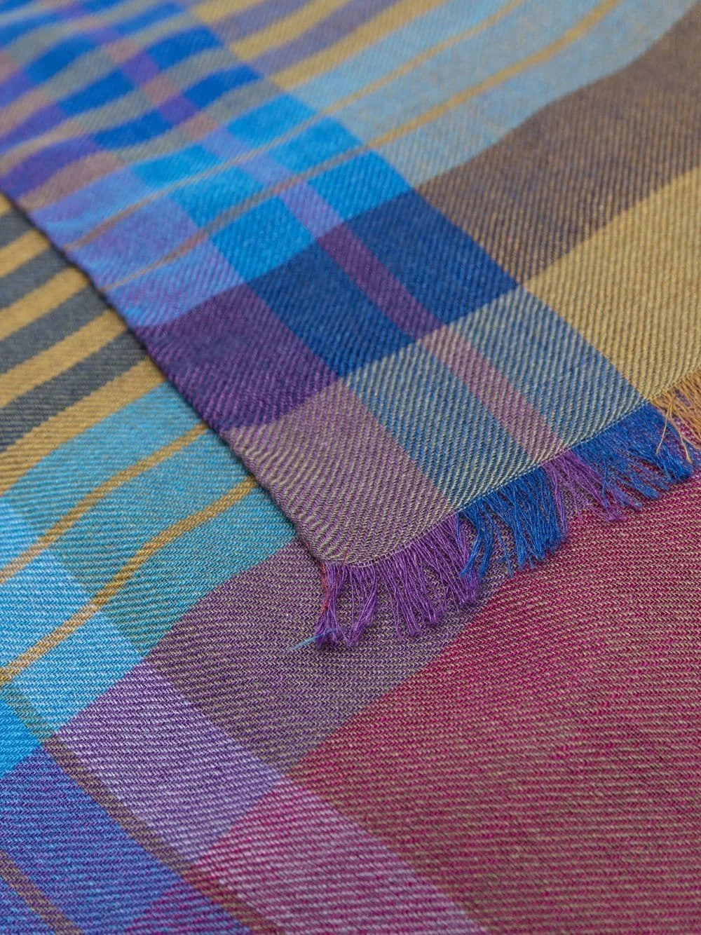 Motif cachemire, bord uni, bords frangés. Couleur : bleu.