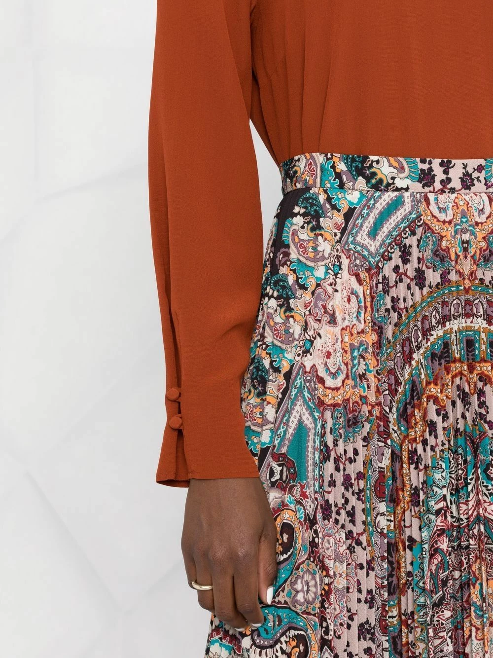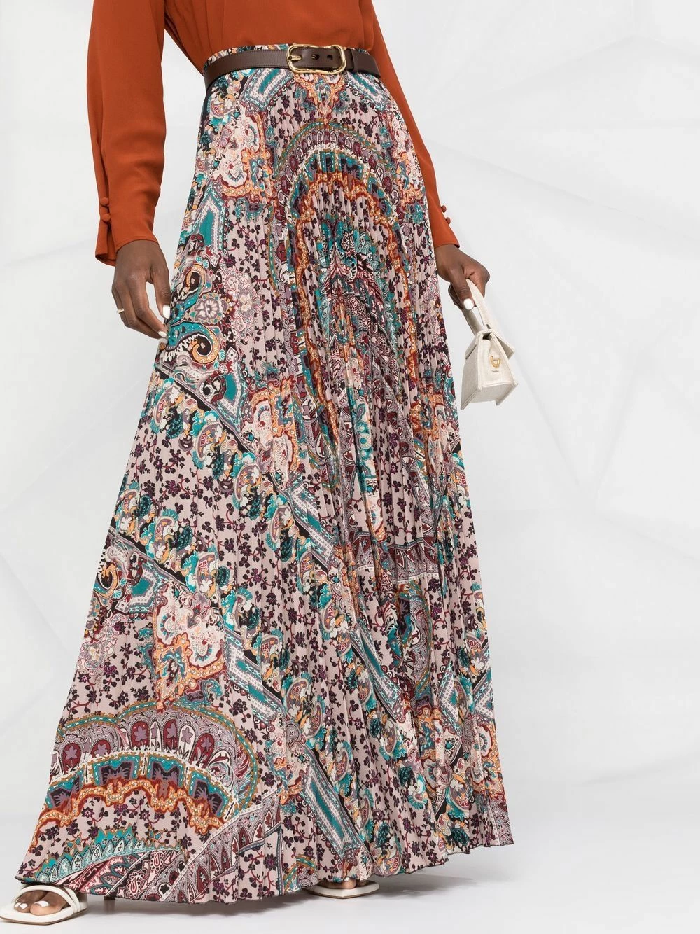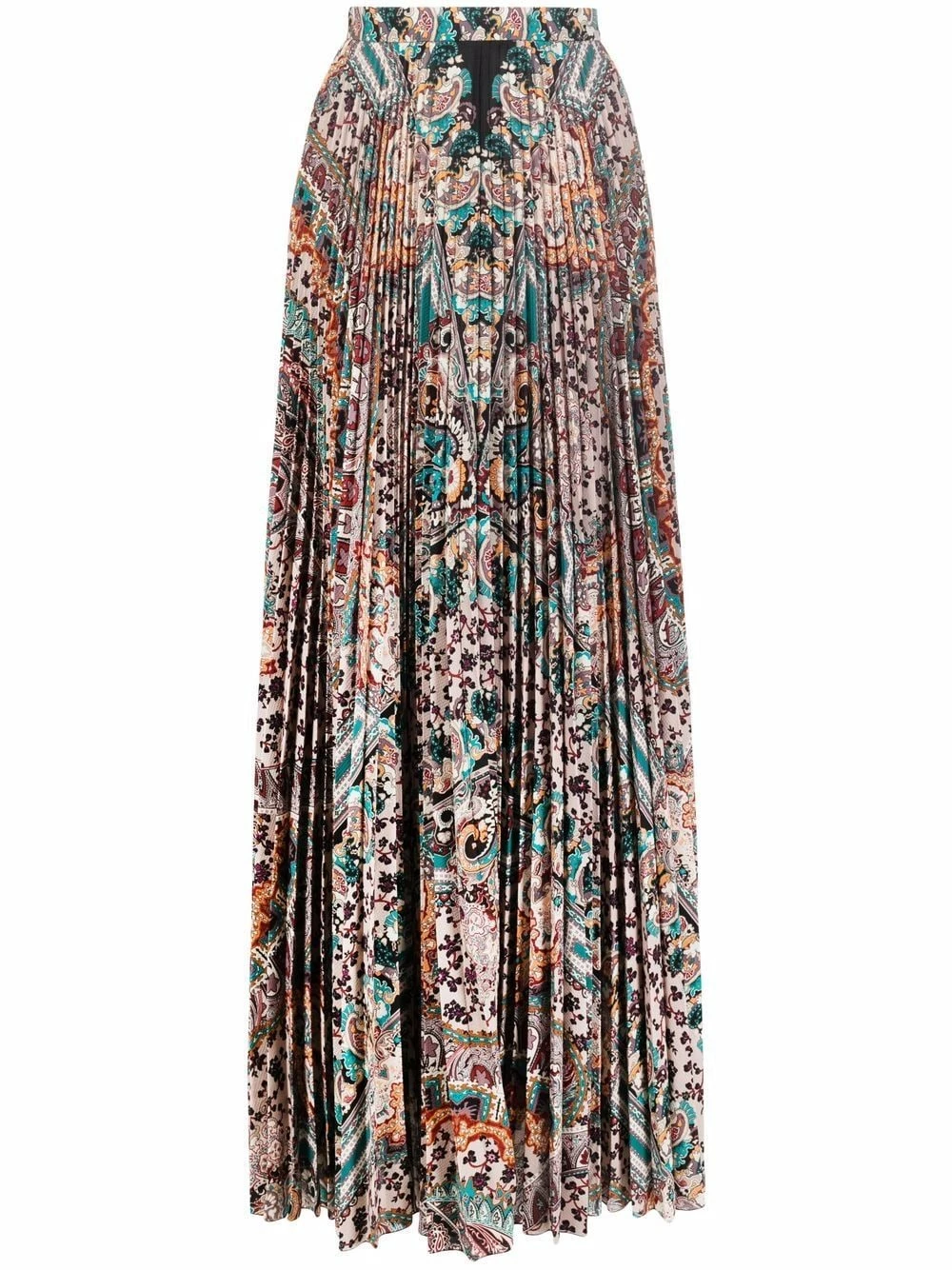 Motif cachemire, design plissé, taille haute, coupe longue. Couleur : multicolore.
