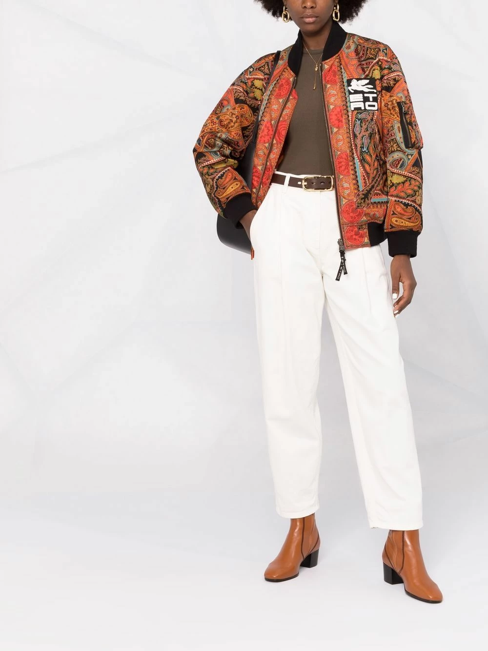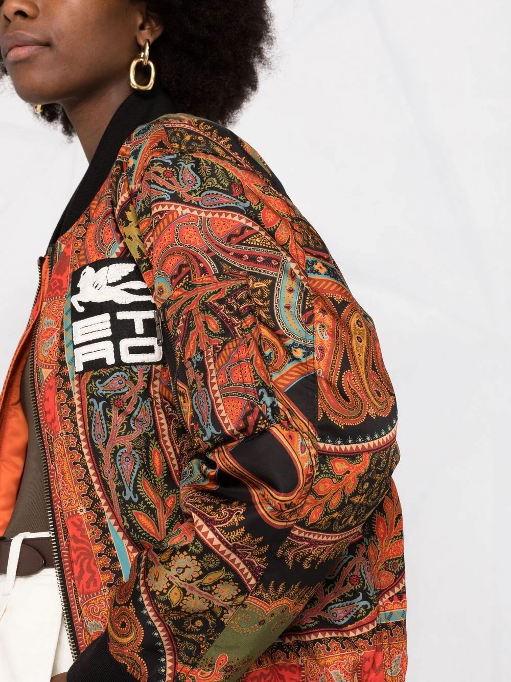 Imprimé abstrait, fermeture zippée devant, patch logo sur le devant, manches longues.