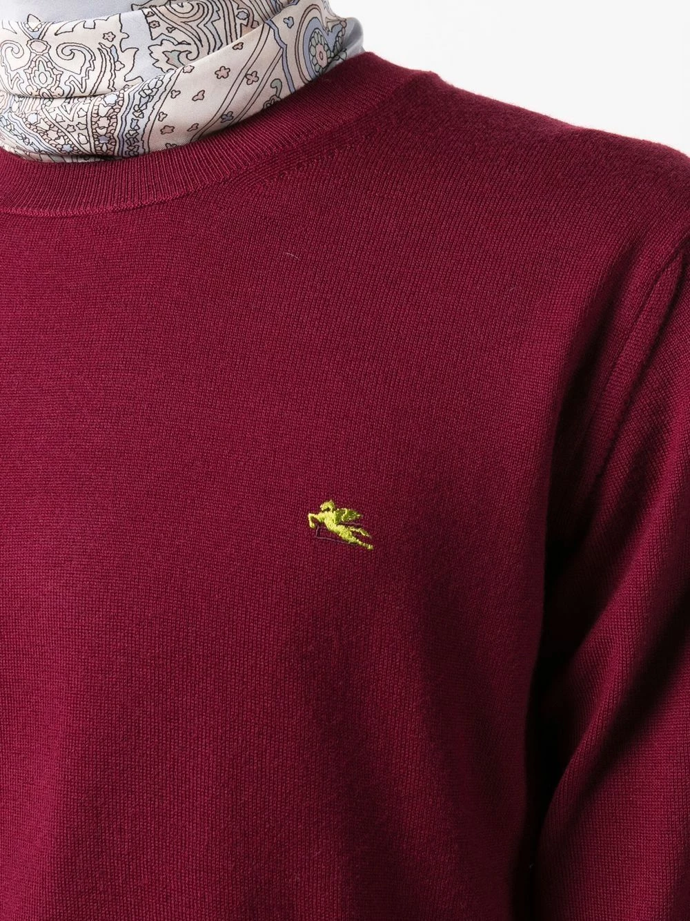 Broderies, encolure ras du cou, manches longues, ourlet nervuré. Matière : laine.