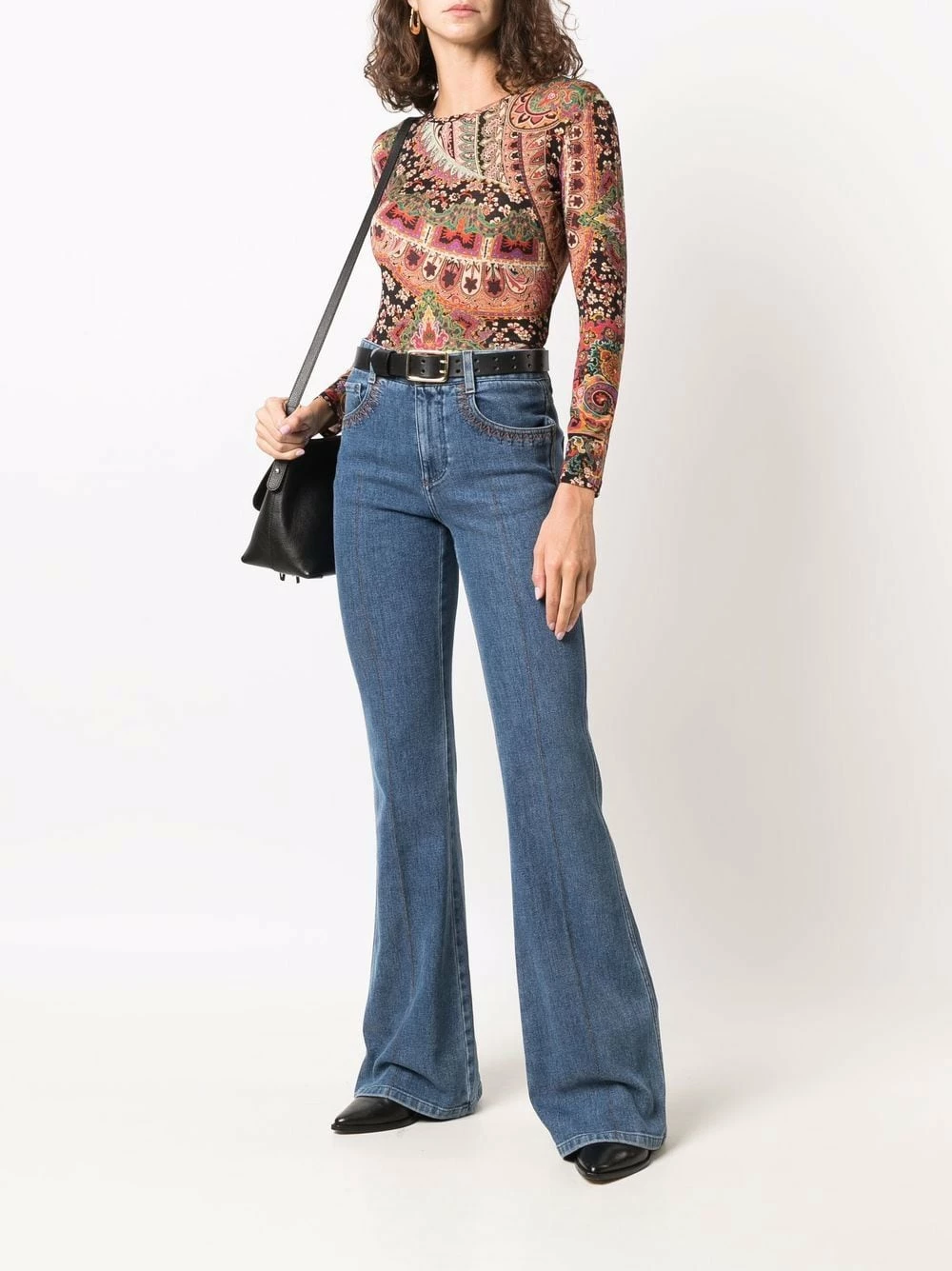 Encolure ronde, manches longues, ourlet droit. Couleur : multicolore.