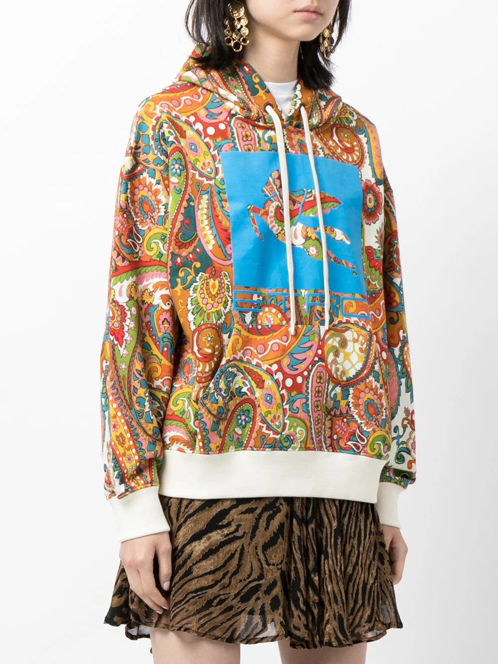 Détail nervuré, logo imprimé sur le devant, motif cachemire, capuche à lien de resserrage, manches longues, pochette plaquée devant. Couleur : multicolore. Matière : coton.