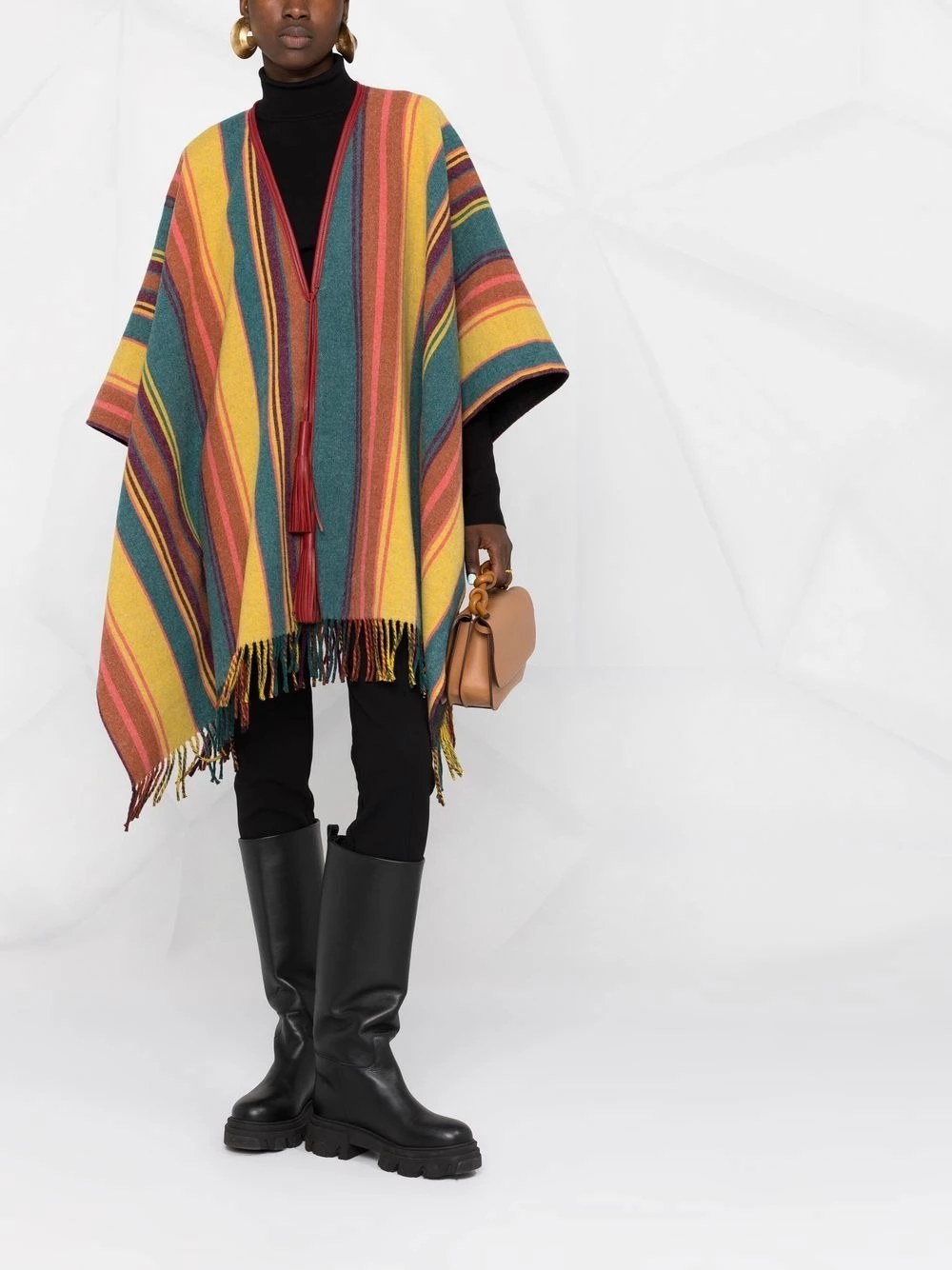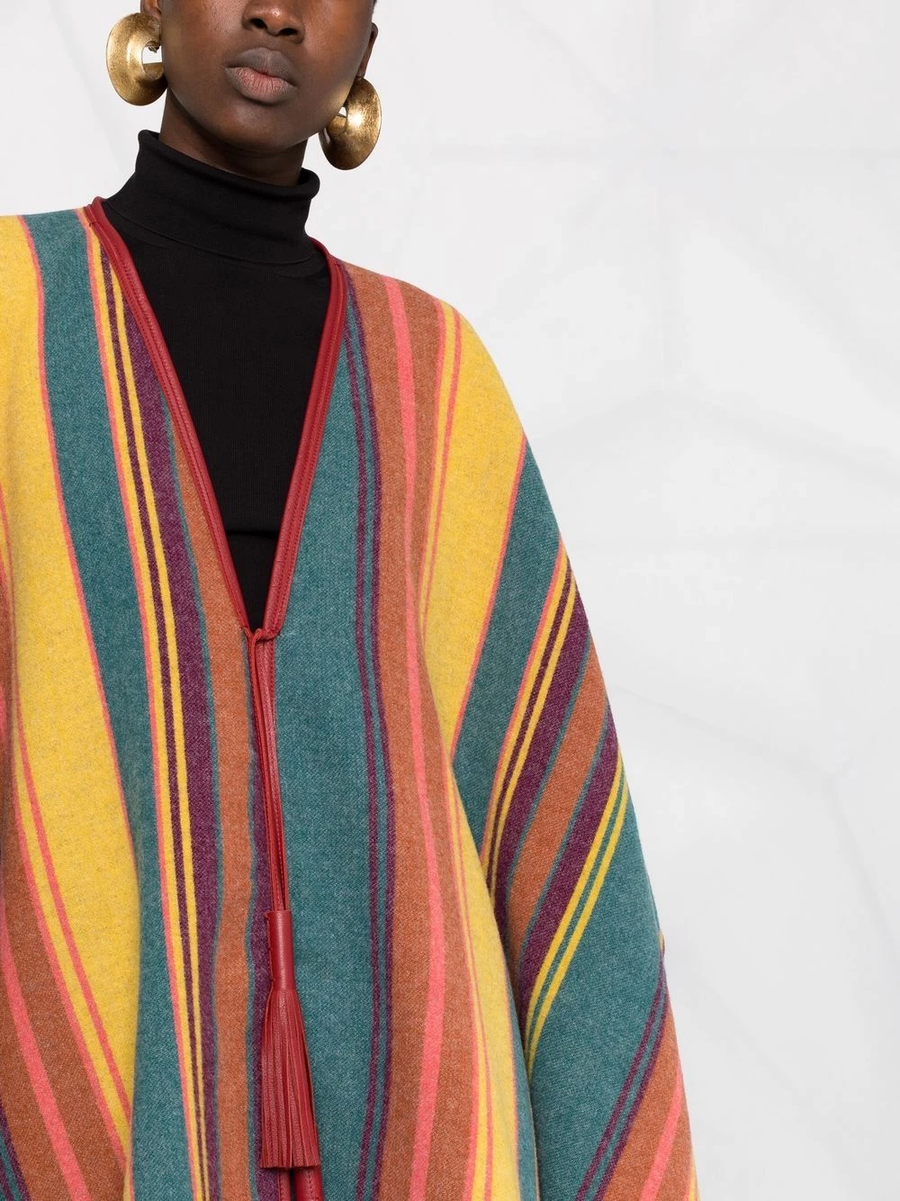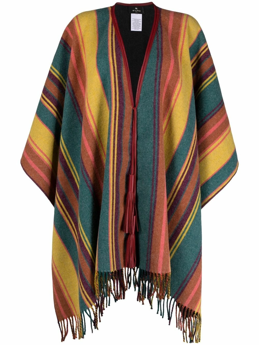 Maille fine, design drapé, design sans manches, finition à franges. Couleur : multicolore. Matière : laine.