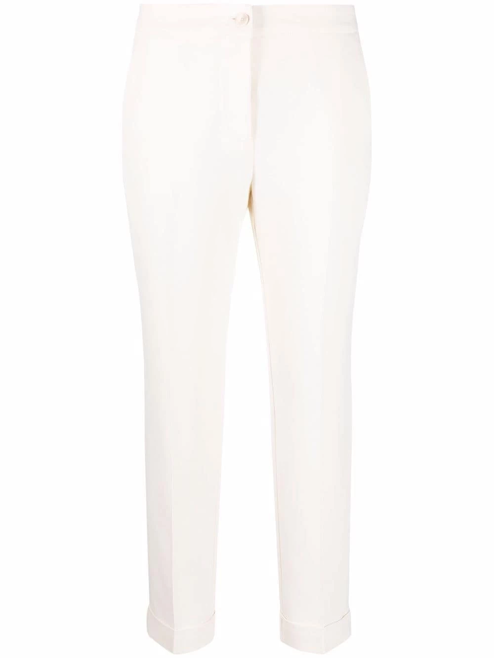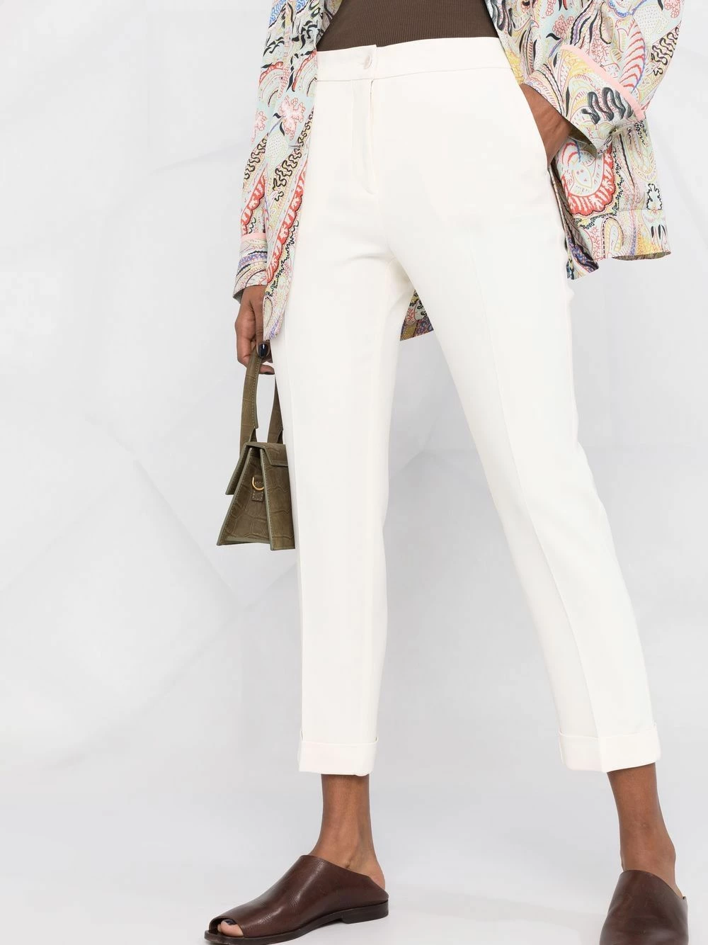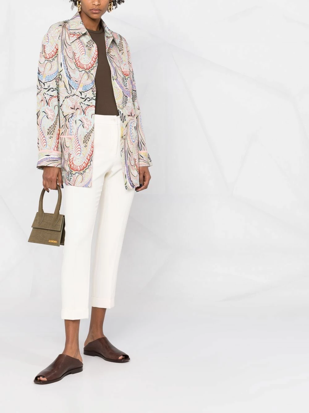 Fermeture à zip et boutons sur le devant, deux poches latérales fendues, coupe slim, coupe courte. Couleur : blanc.