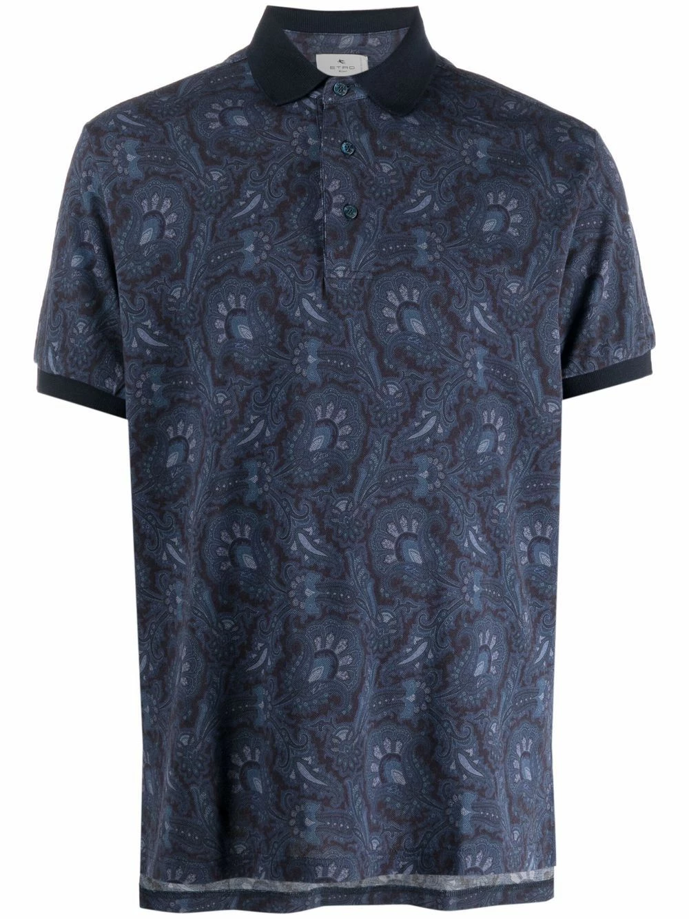 Motif cachemire, col polo, patte de boutonnage sur le devant, manches courtes.