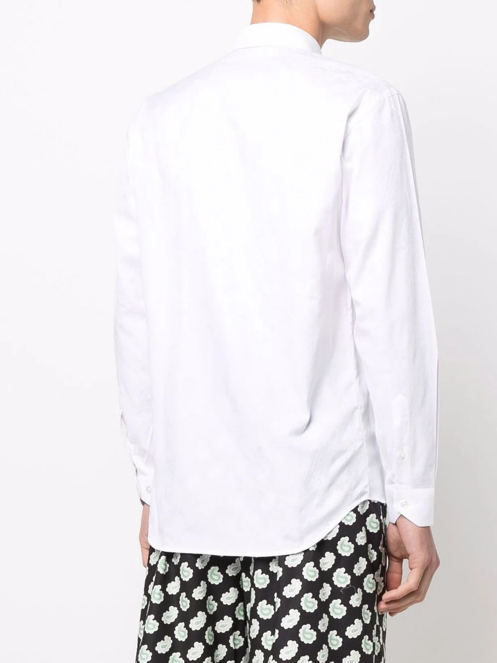 Patte de boutonnage sur le devant, col classique, manches longues, manches à poignets boutonnés, ourlet incurvé. Couleur : blanc. Matière : coton.