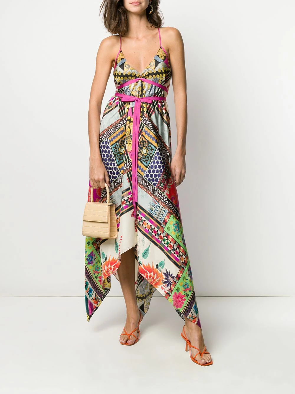 Robe-nuisette à détail de nœud Etro avec encolure cœur, fines bretelles, détails de découpes et ourlet coupé en biais.
