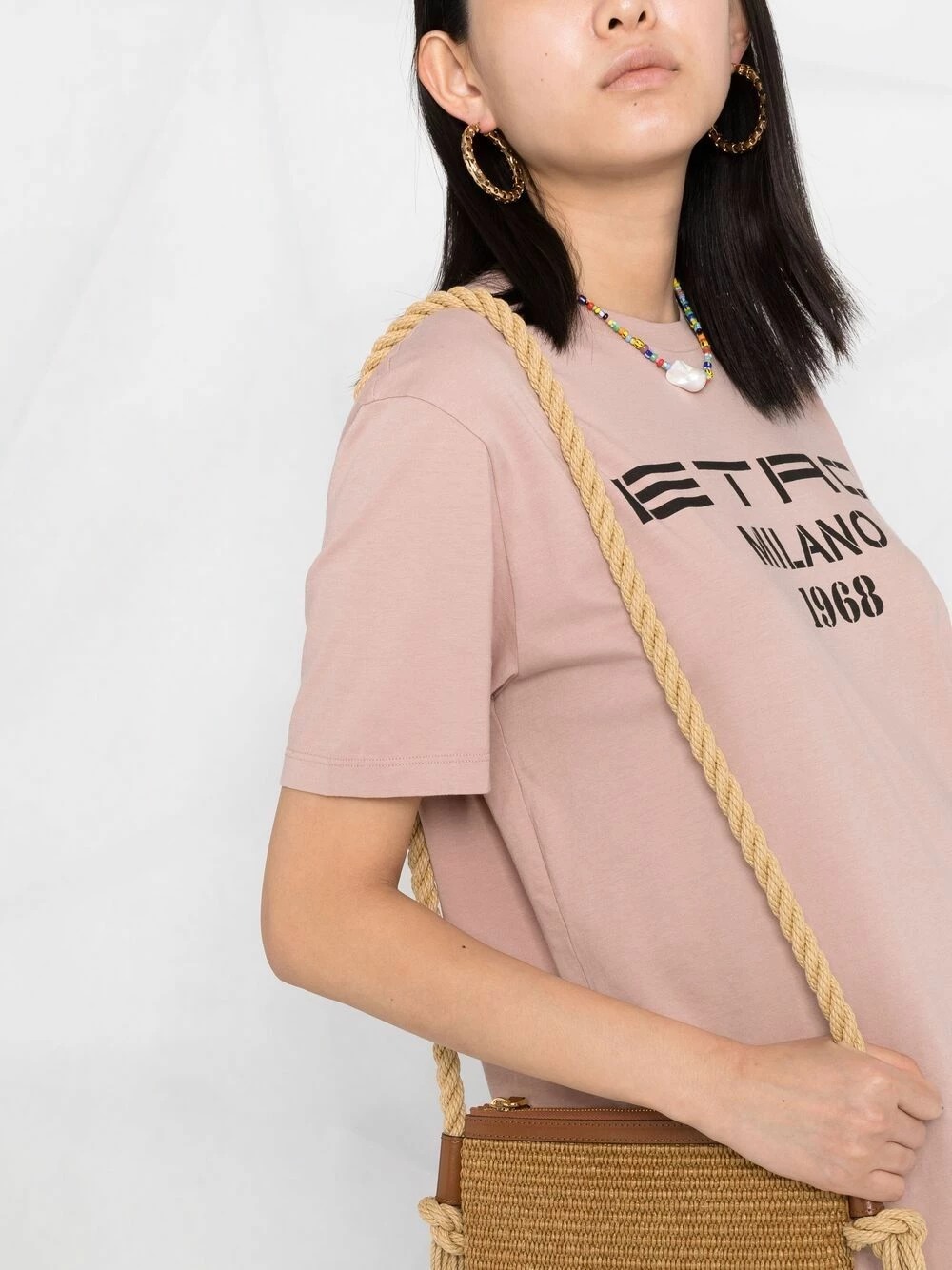 Logo imprimé à la poitrine, détail nervuré, encolure ronde, manches courtes. Couleur : rose. Matière : coton.