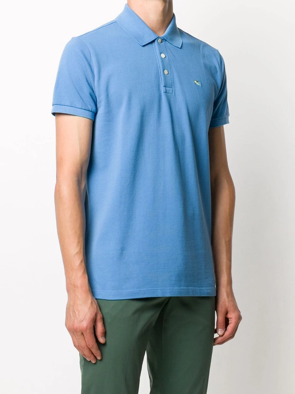 Col polo, logo brodé, manches courtes, ourlet droit. Couleur : bleu. Matière : coton.
