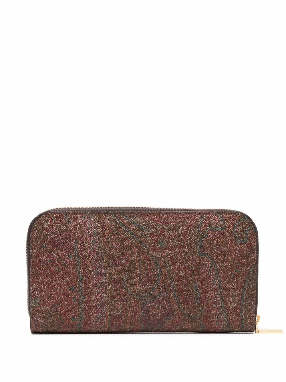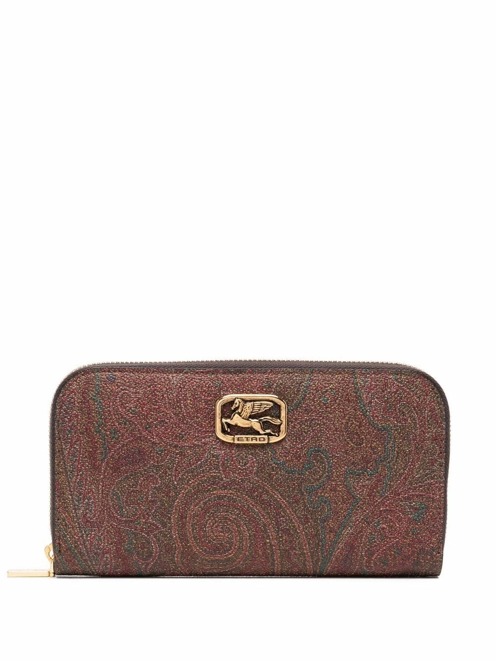 Plaque logo dorée, motif cachemire, fermeture zippée tout autour, compartiments intérieurs pour carte, poches intérieures zippées. Couleur : multicolore. Matière : coton.