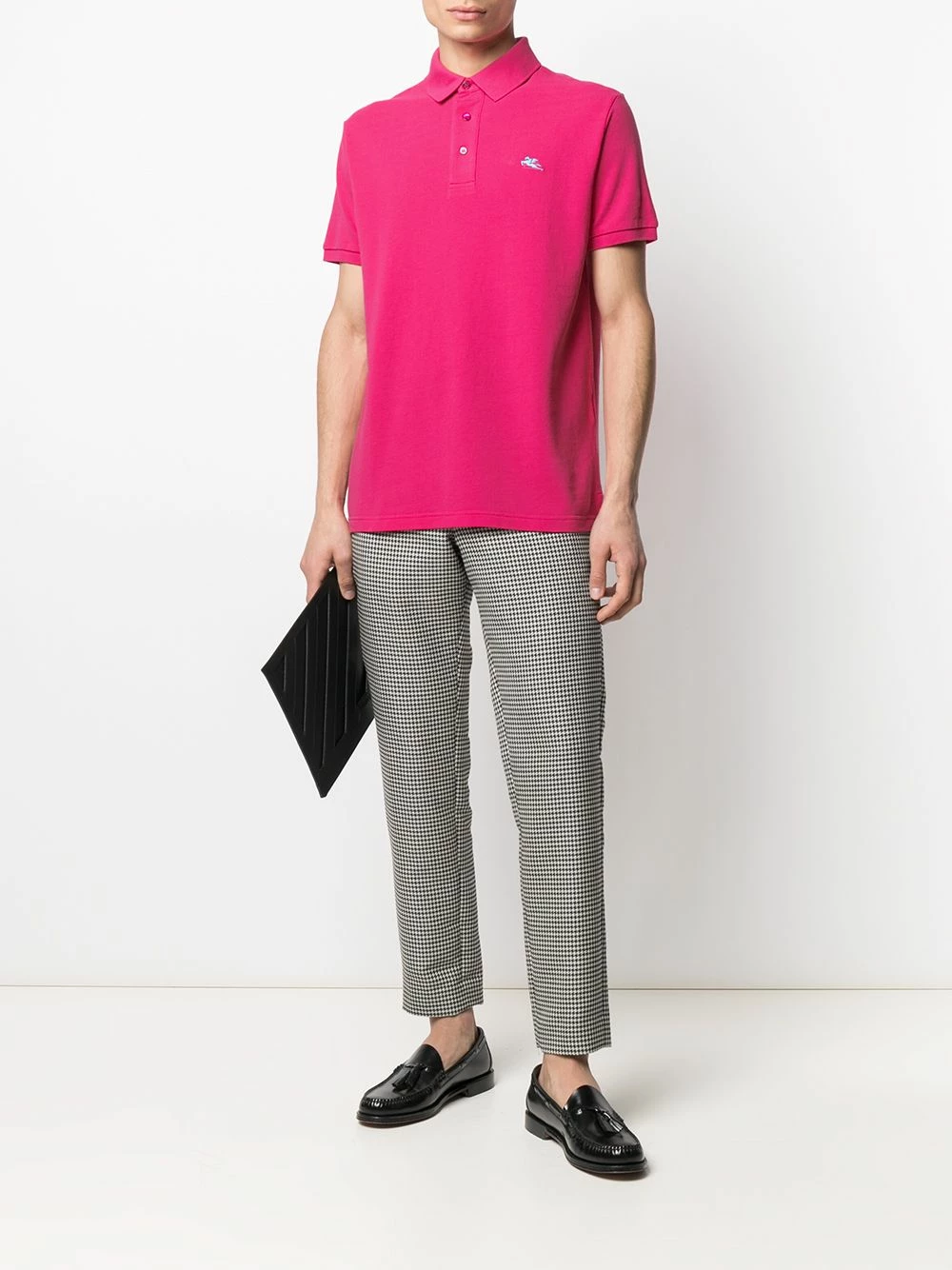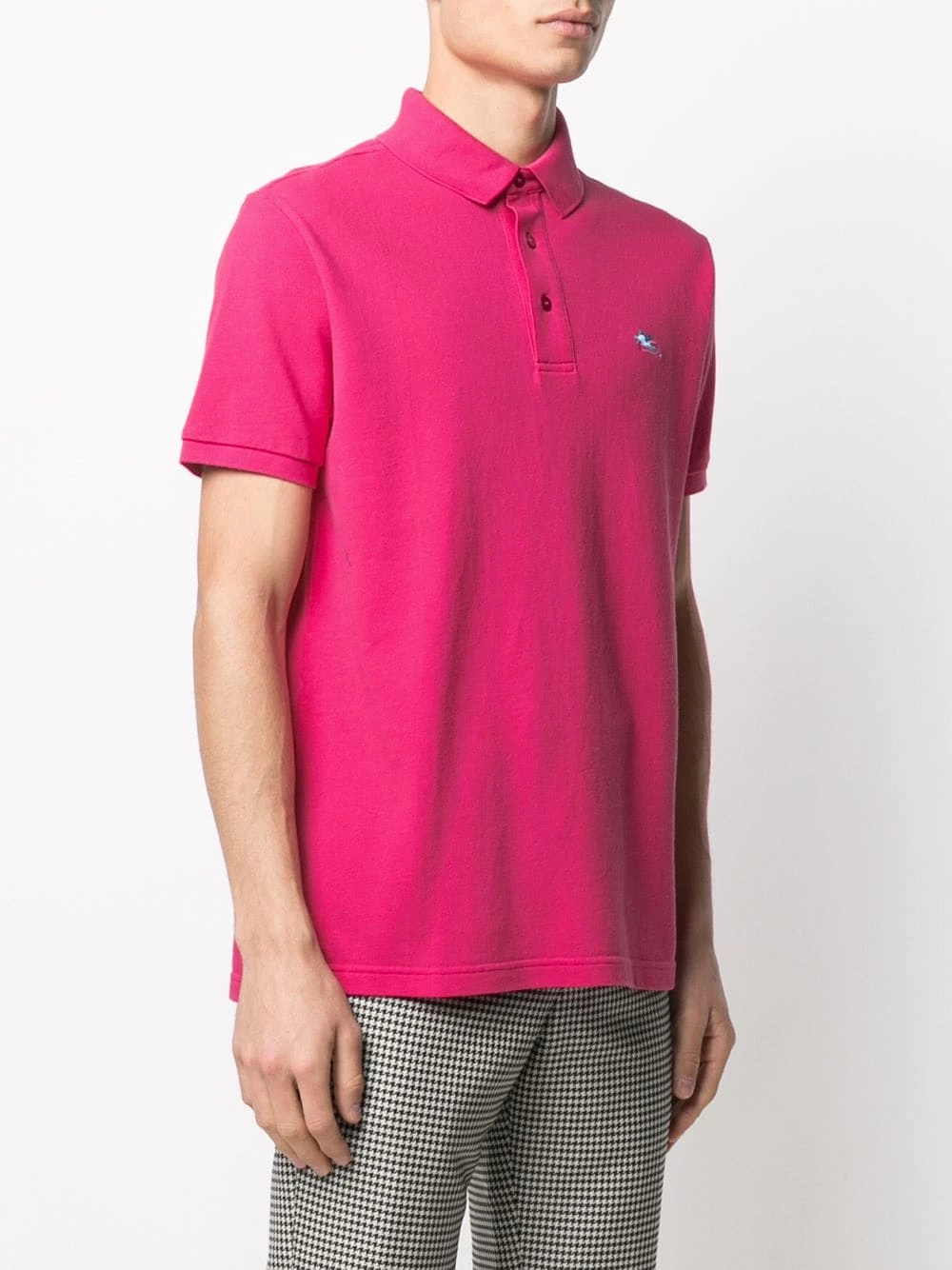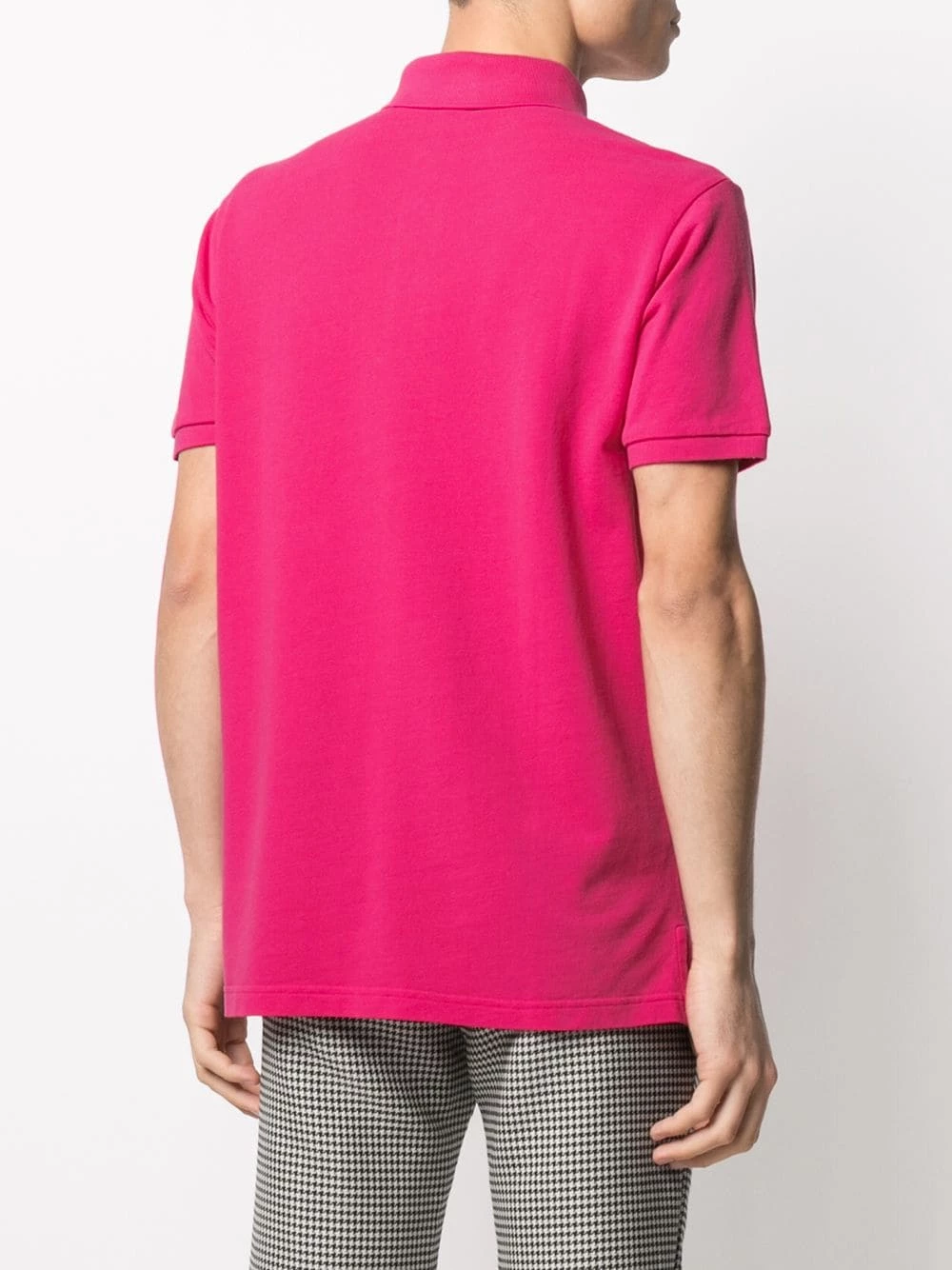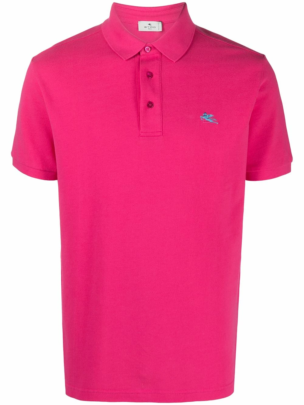Col polo, boutonnière sur le devant, manches courtes, logo brodée sur la poitrine. Couleur : rose. Matière : coton.