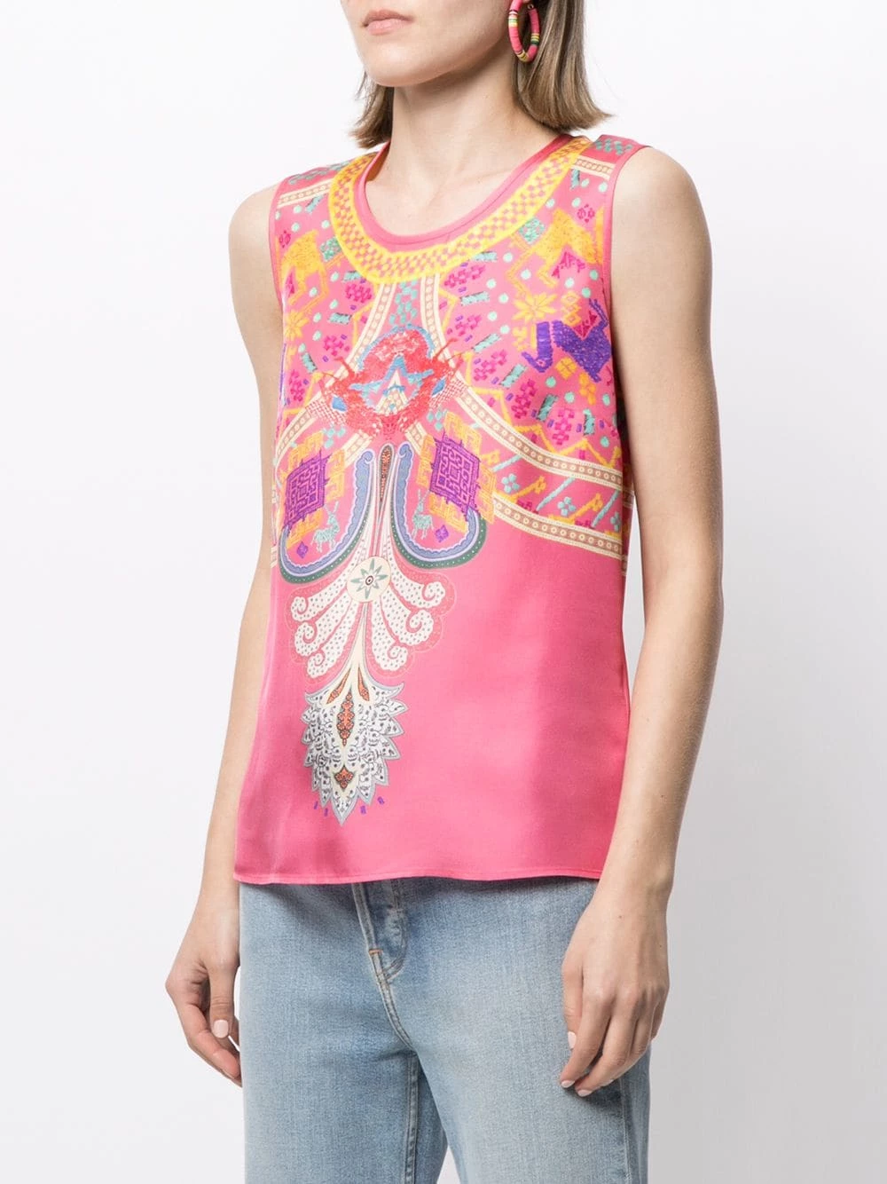 Encolure ronde, boutonnière à l’arrière, design sans manches, ourlet droit. Matière : soie.
