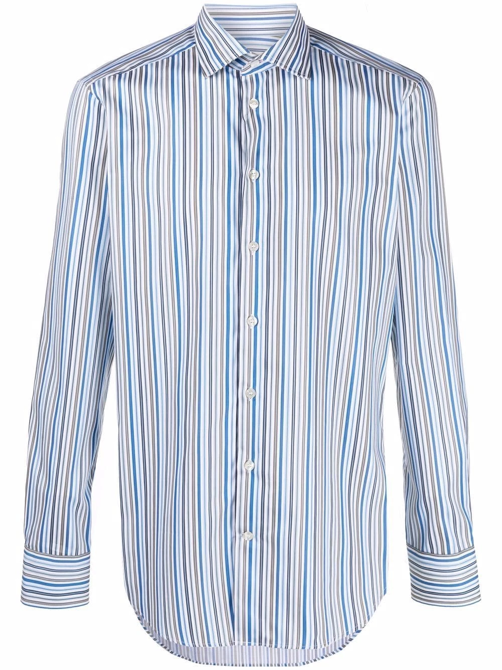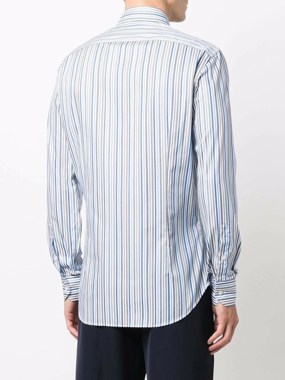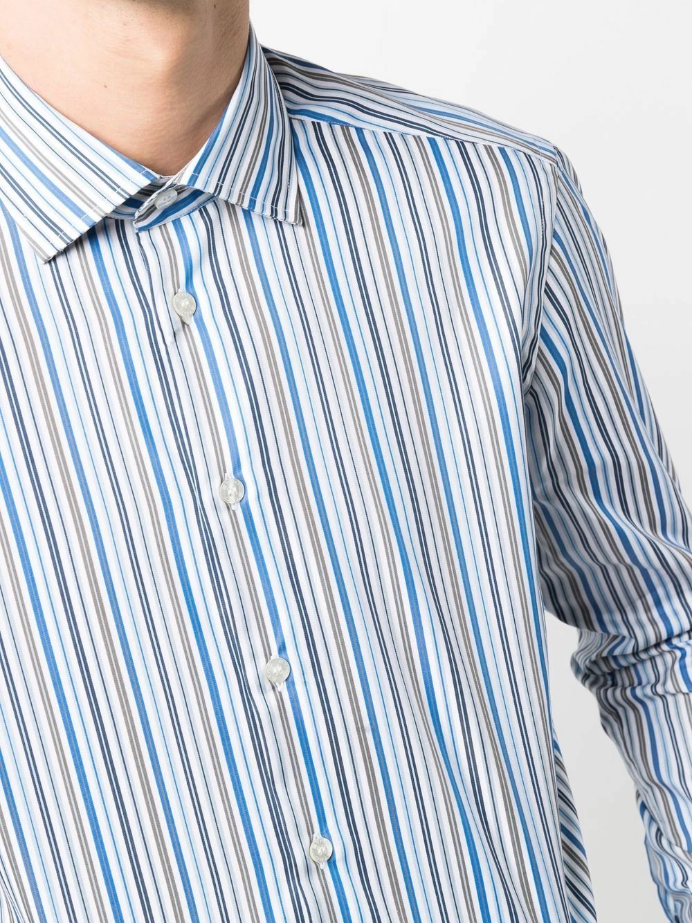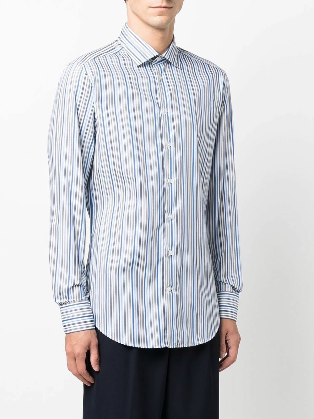 Rayures verticales imprimées, col classique, boutonnière sur le devant, manches longues, poignets boutonnés, ourlet incurvé. Matière : coton.
