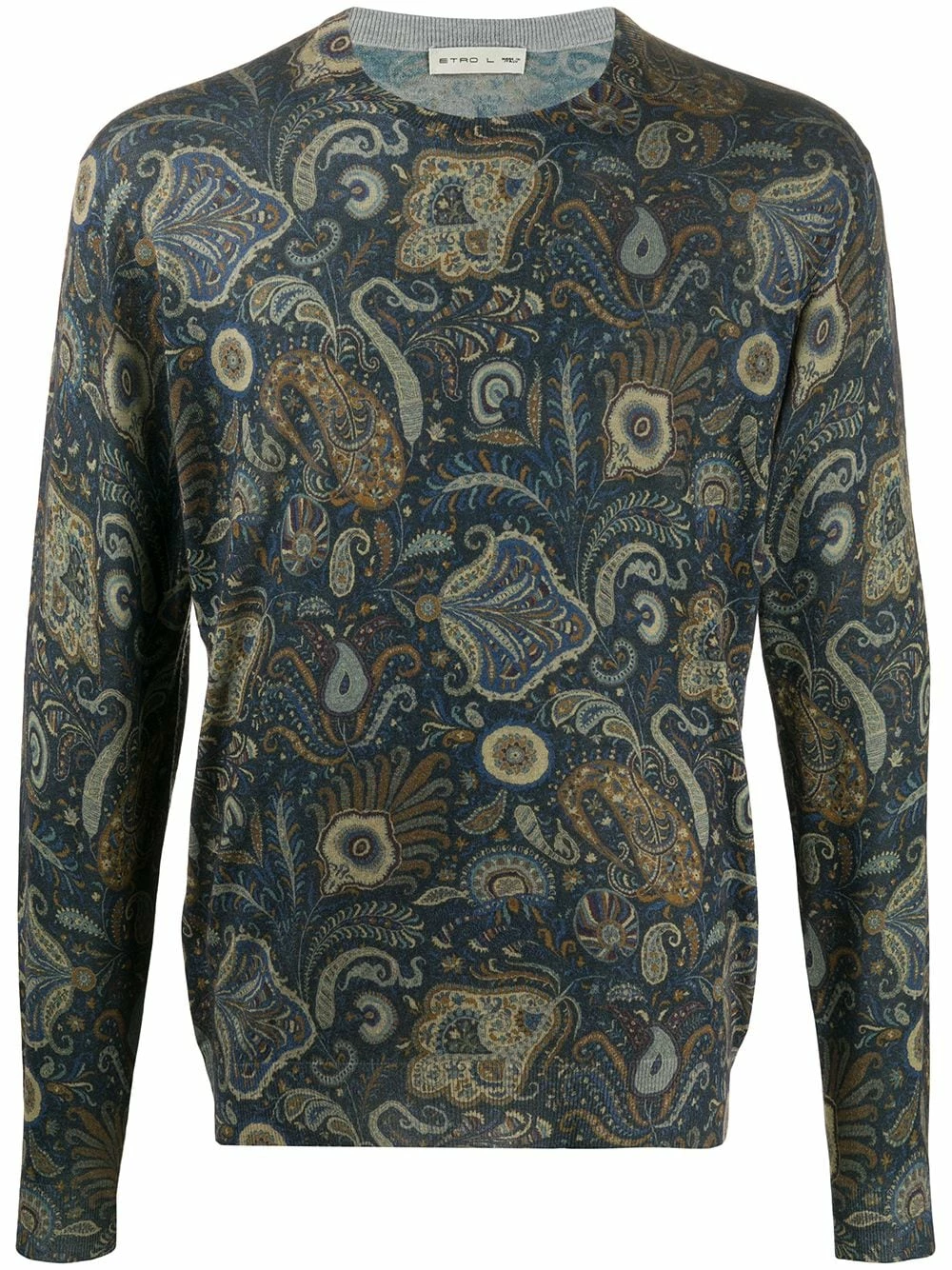Pull à motif cachemire Etro avec forme détendue, coupe stretch, encolure ras du cou, manches longues et ourlet et poignets nervurés. Couleur : multicolore.