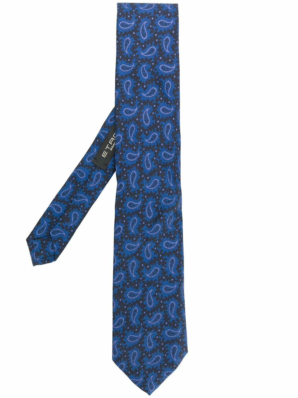 Cravate à imprimé cachemire Etro avec design en pointe et taille ajustable. Couleur : bleu.