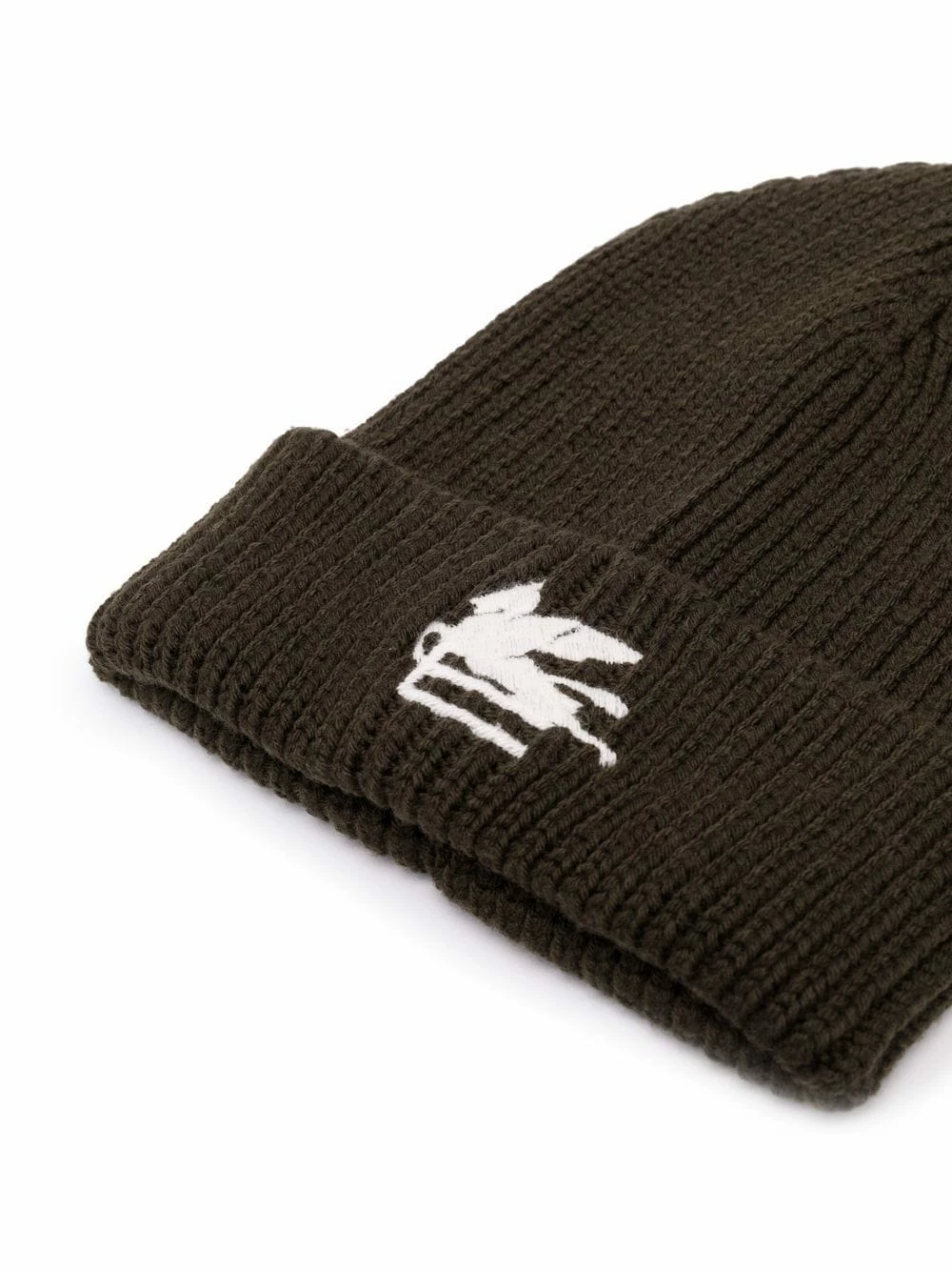 Maille épaisse, logo brodé sur le devant, ourlet retroussé. Couleur : vert. Matière : laine.