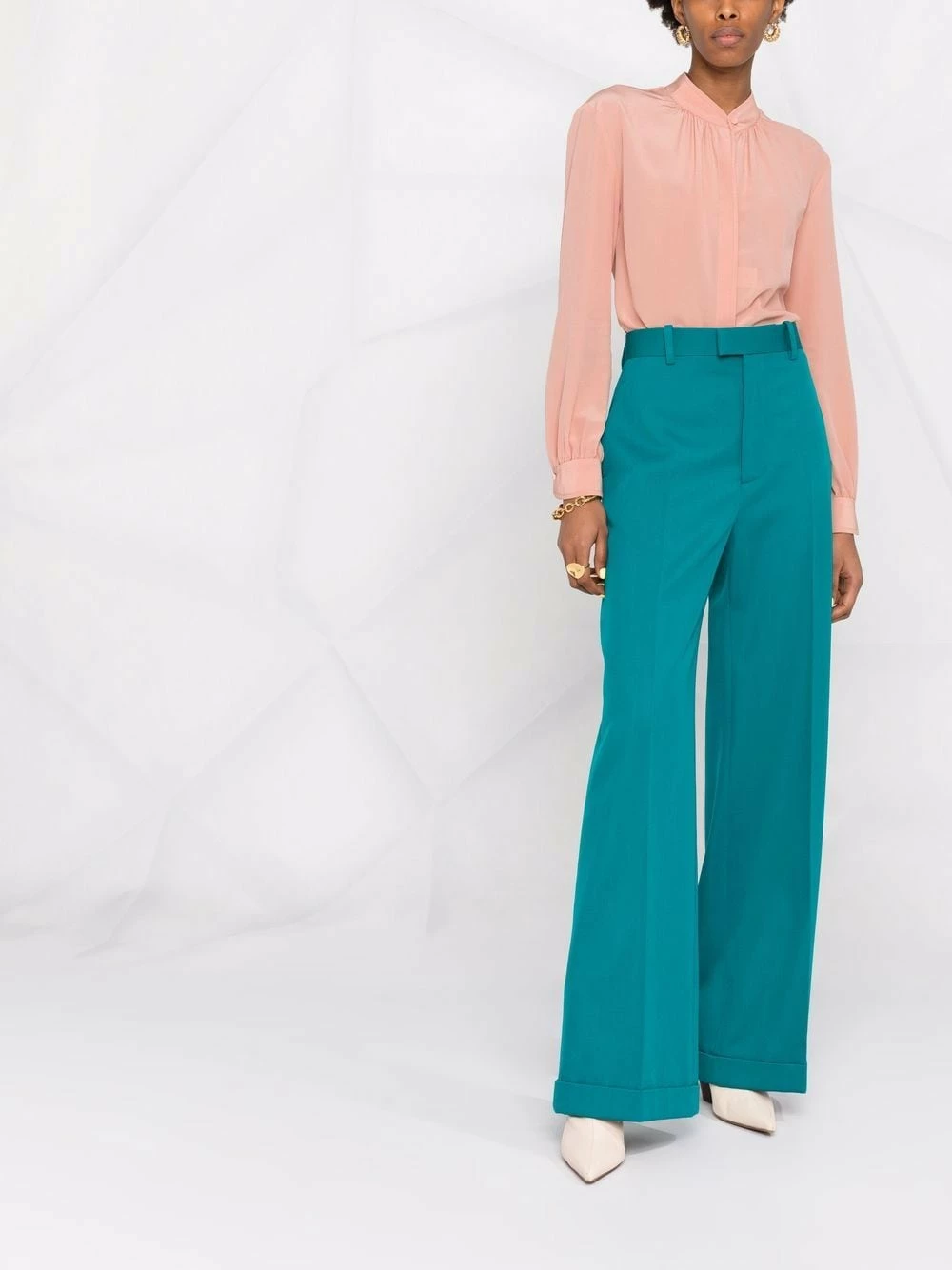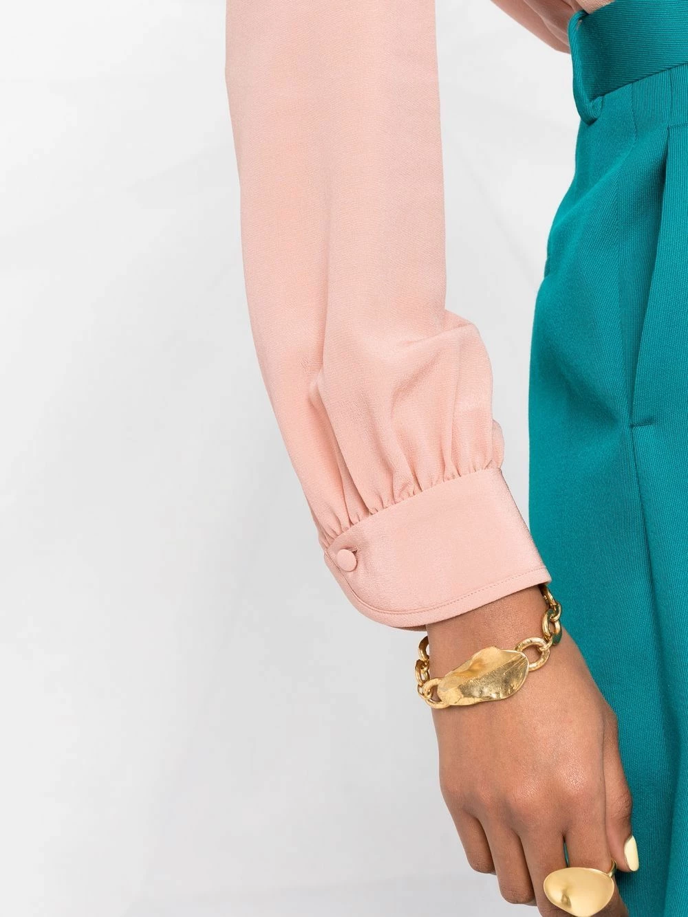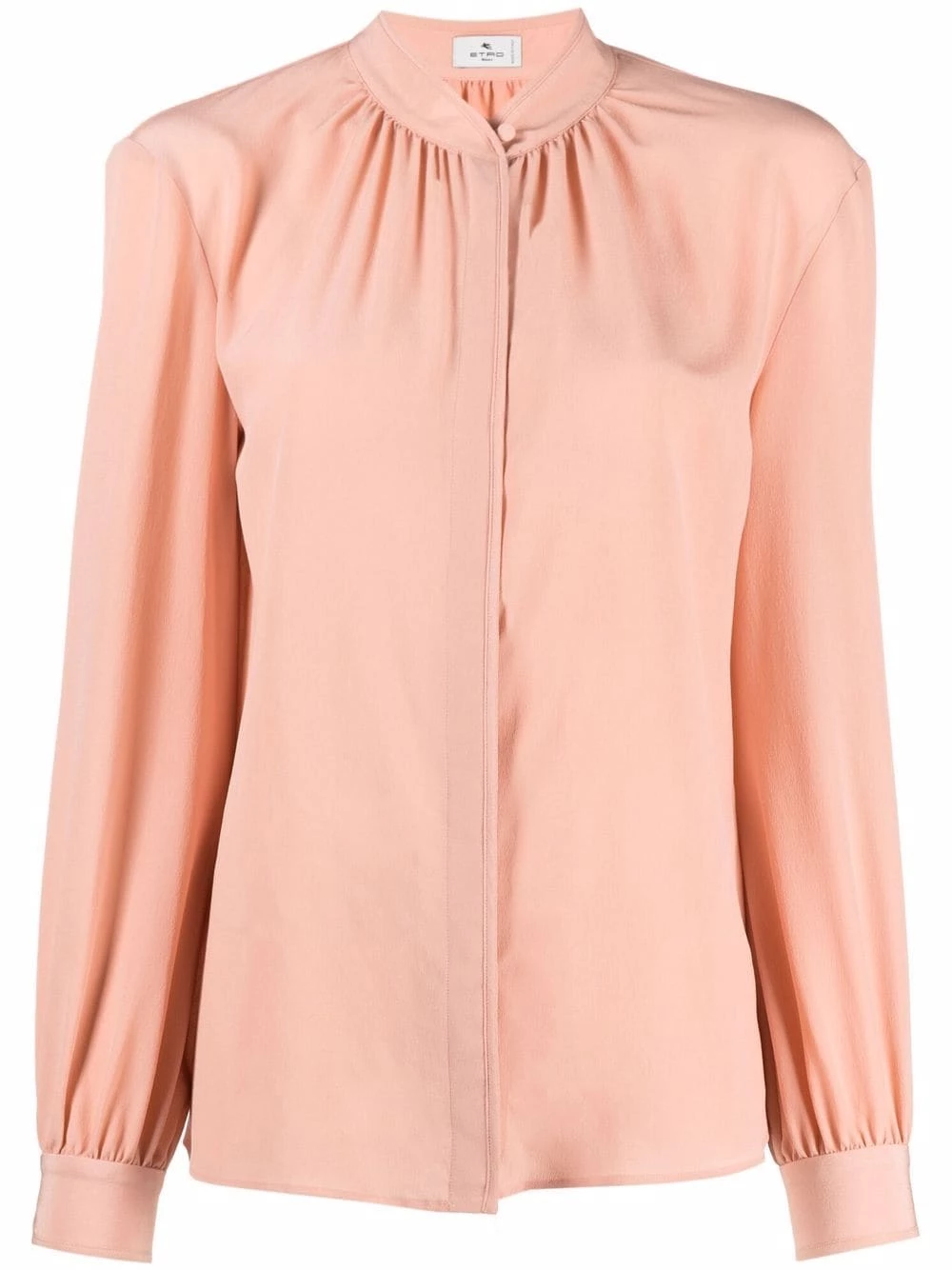 Col montant, boutonnière sur le devant, manches longues, poignets boutonnés, ourlet incurvé. Matière : soie.