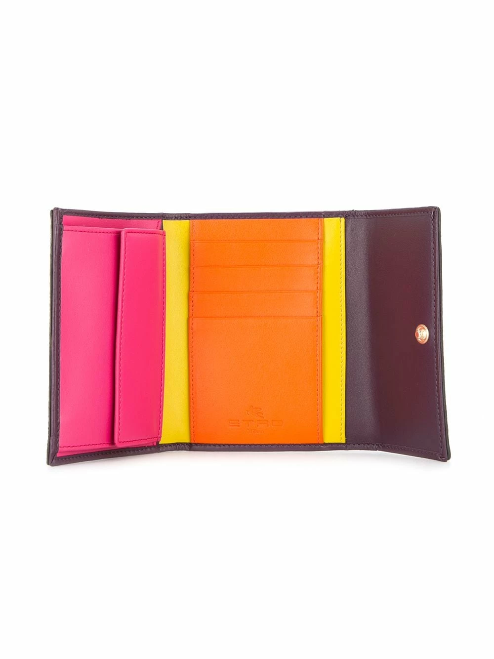 Portefeuille pliant à motif cachemire Etro avec rabat replié sur le dessus et loquet, compartiments porte-cartes, poche ticket, compartiment à billets, design colour block et plaque logo dorée. Couleur: multicolore.