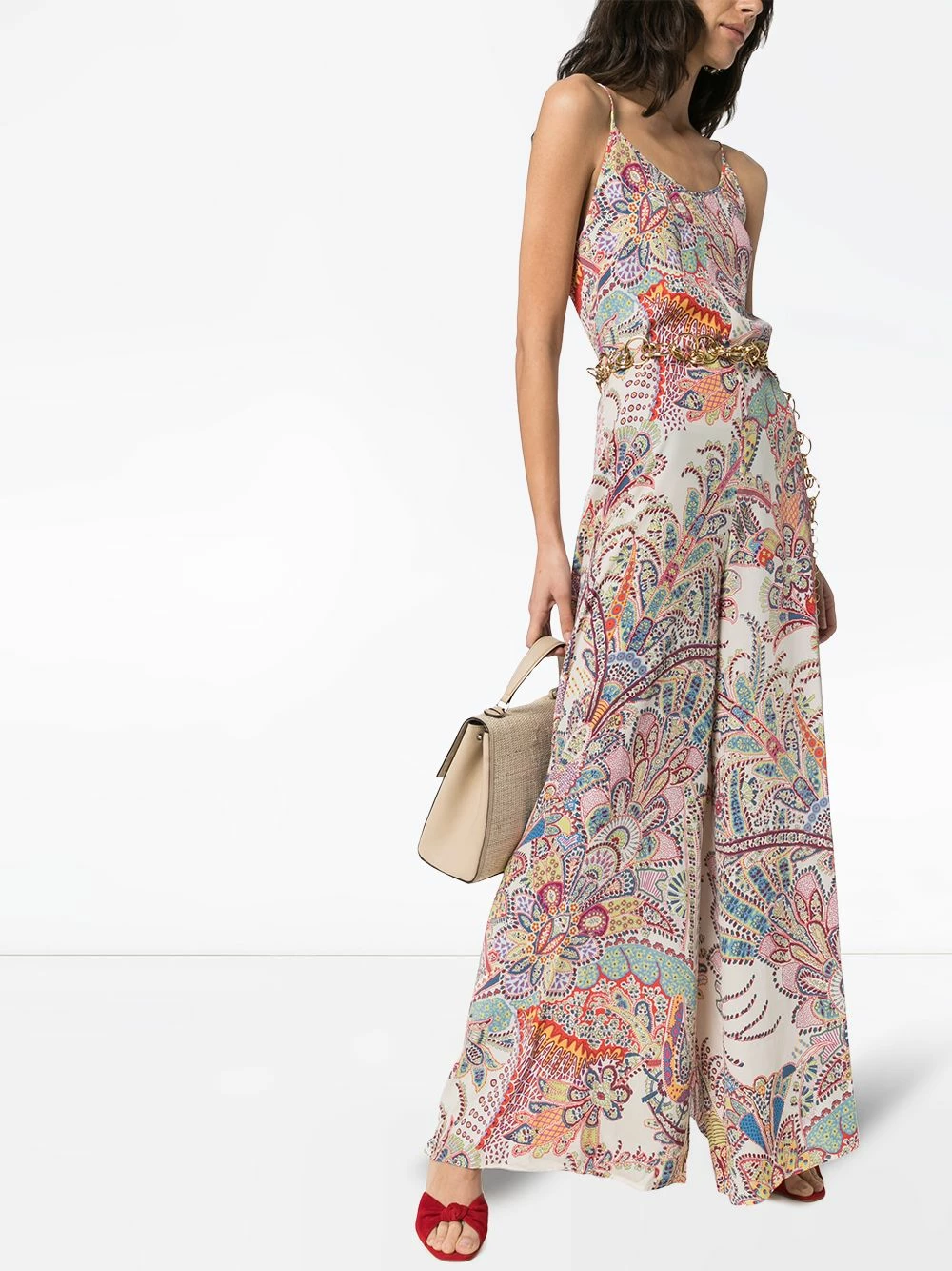 Combinaison ample à motif cachemire Etro avec encolure cœur, un design sans manches et coupe longue.