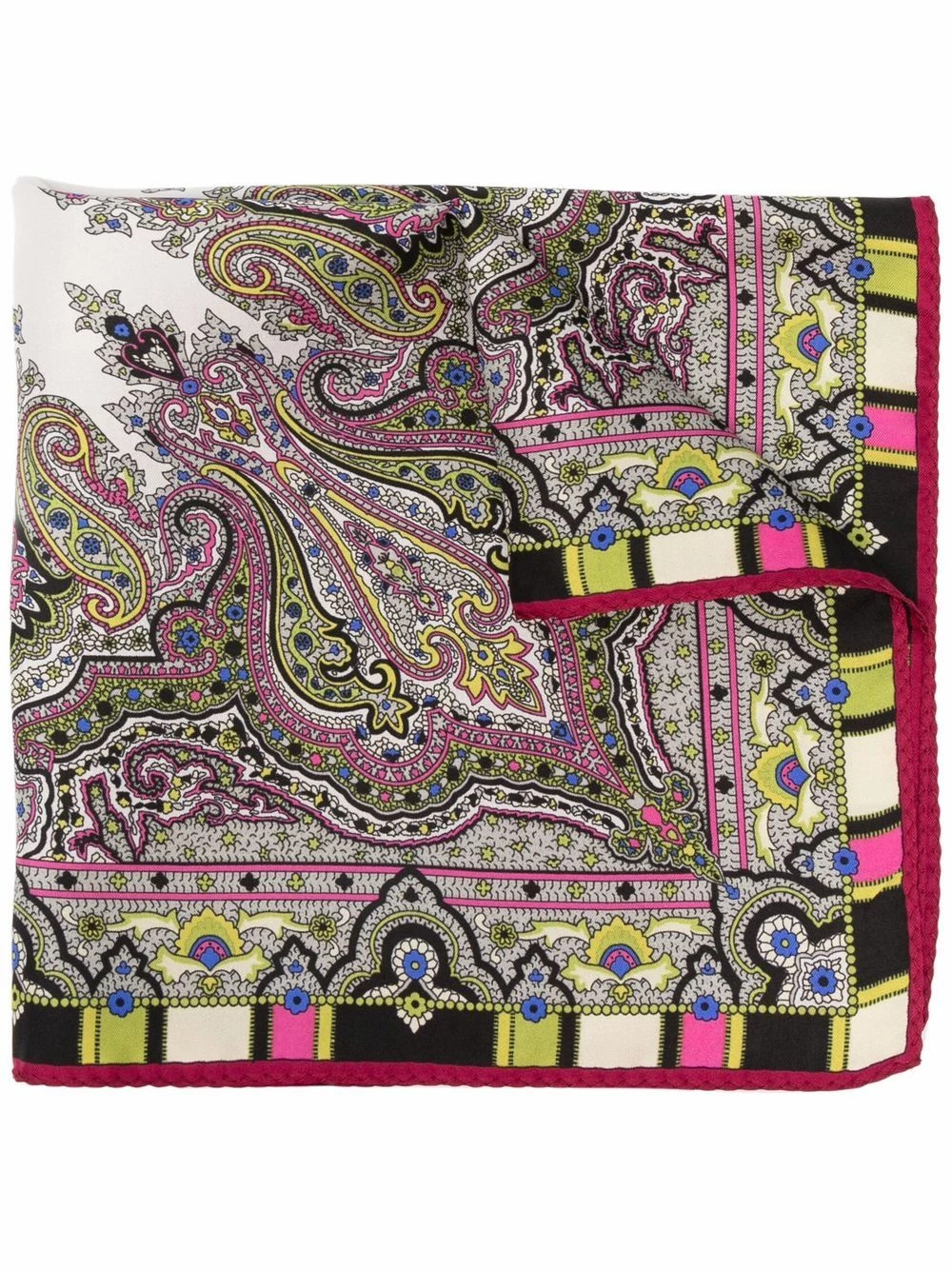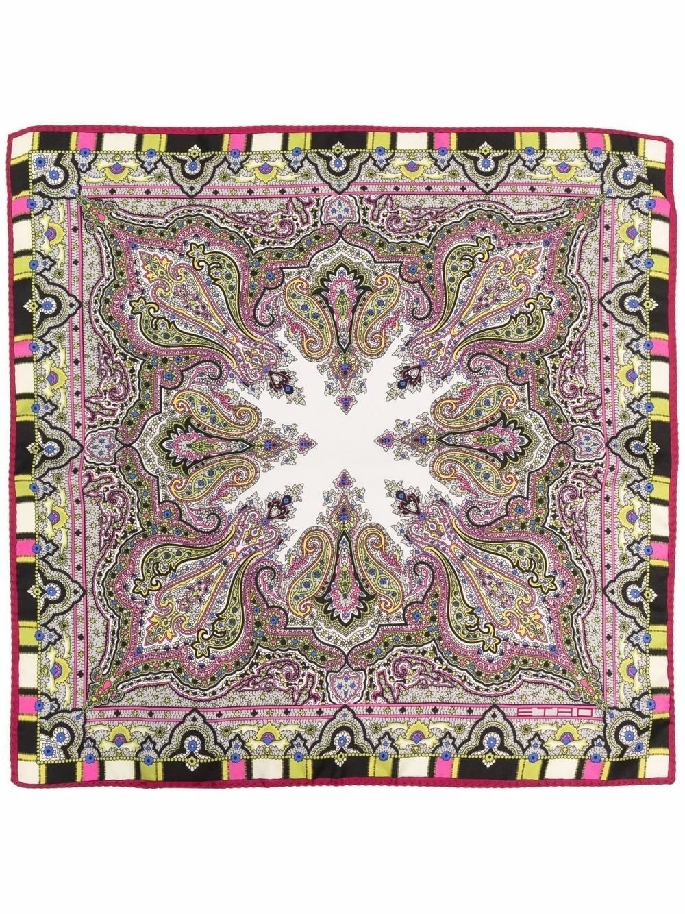 Forme carrée, motif cachemire, bords finis. Couleur : multicolore. Matière : soie.
