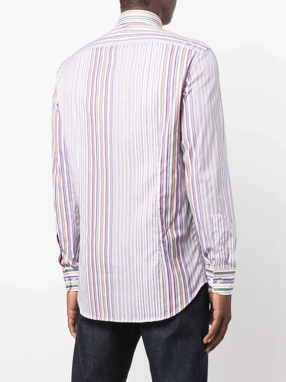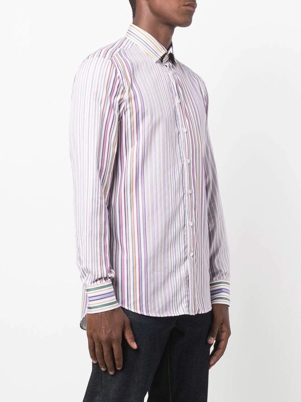 Rayures verticales, col classique, boutonnière sur le devant, manches longues, poignets boutonnés, ourlet incurvé. Matière : coton.